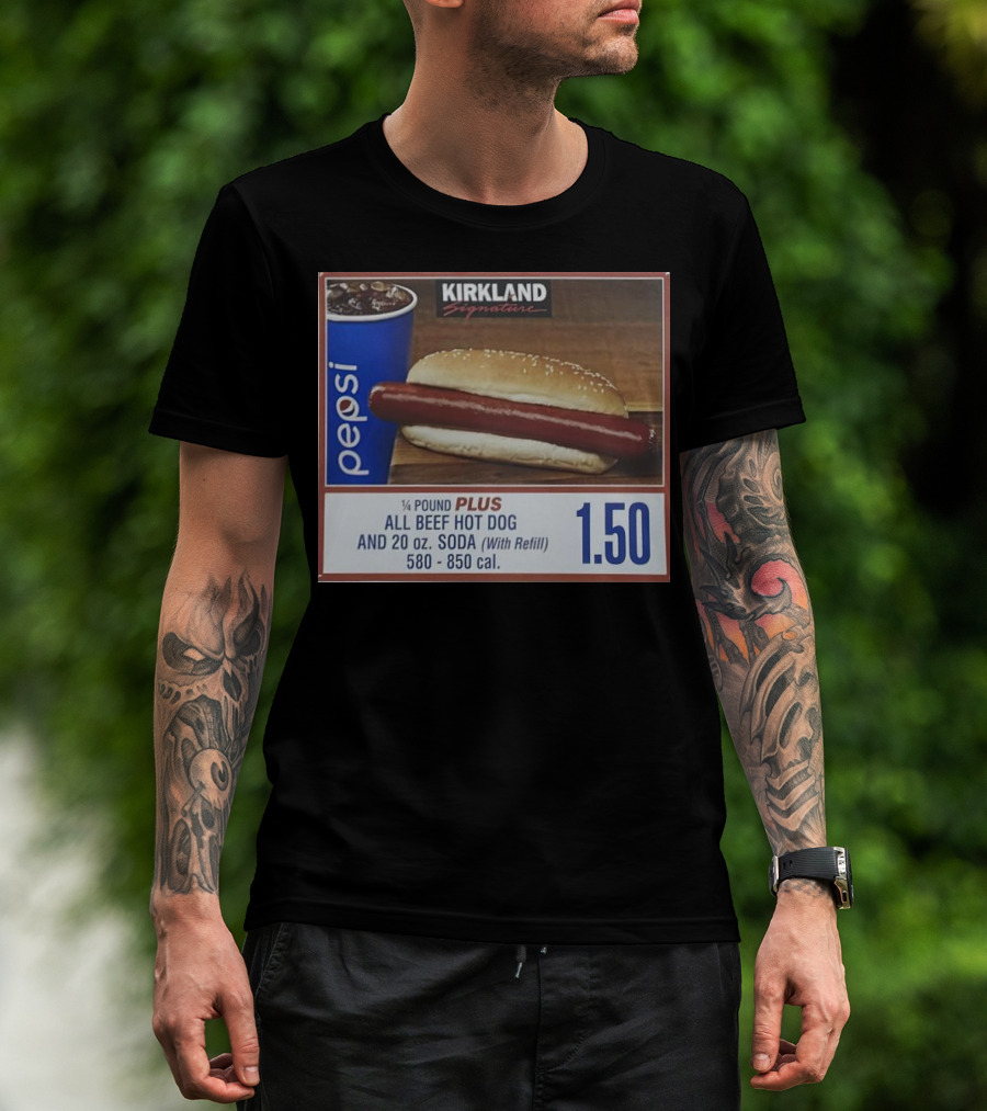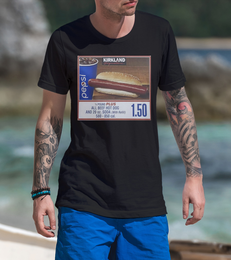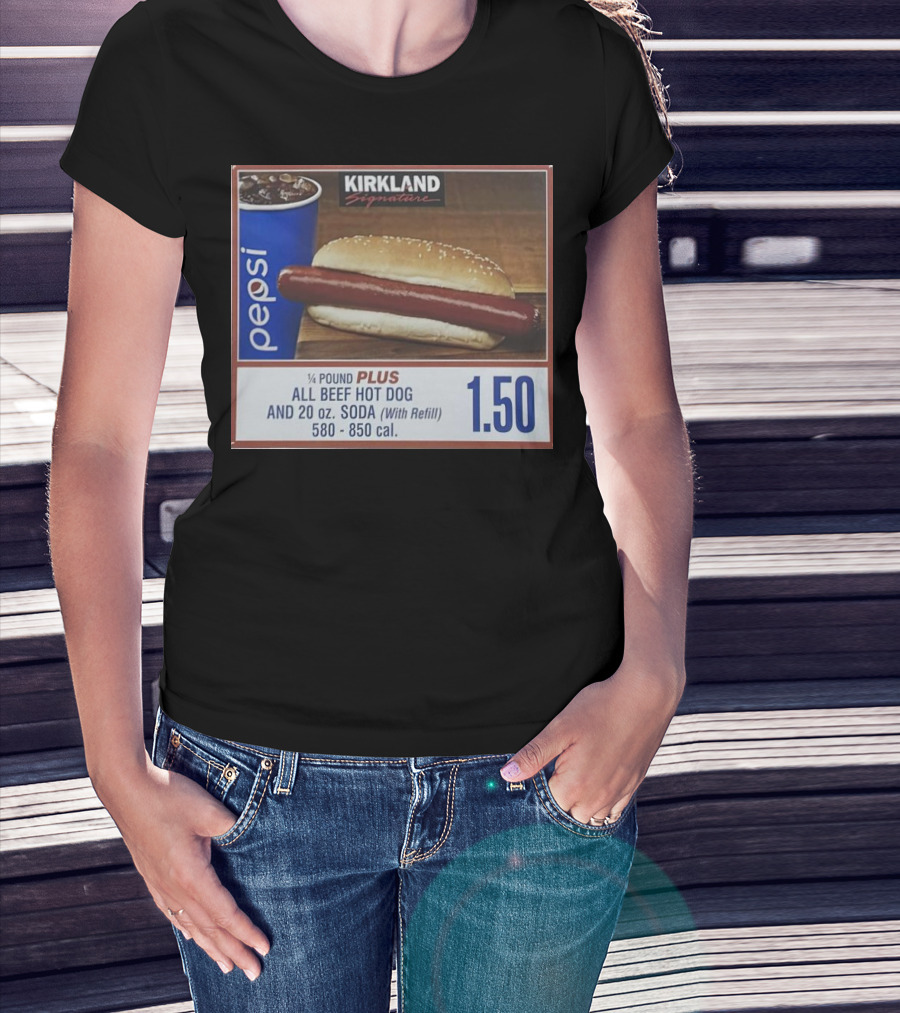 Kirkland Signature Pepsi 1/4 Pound Plus All Beef Hot Dog And 20 Oz. Soda With Refill 1.50 T-Shirt