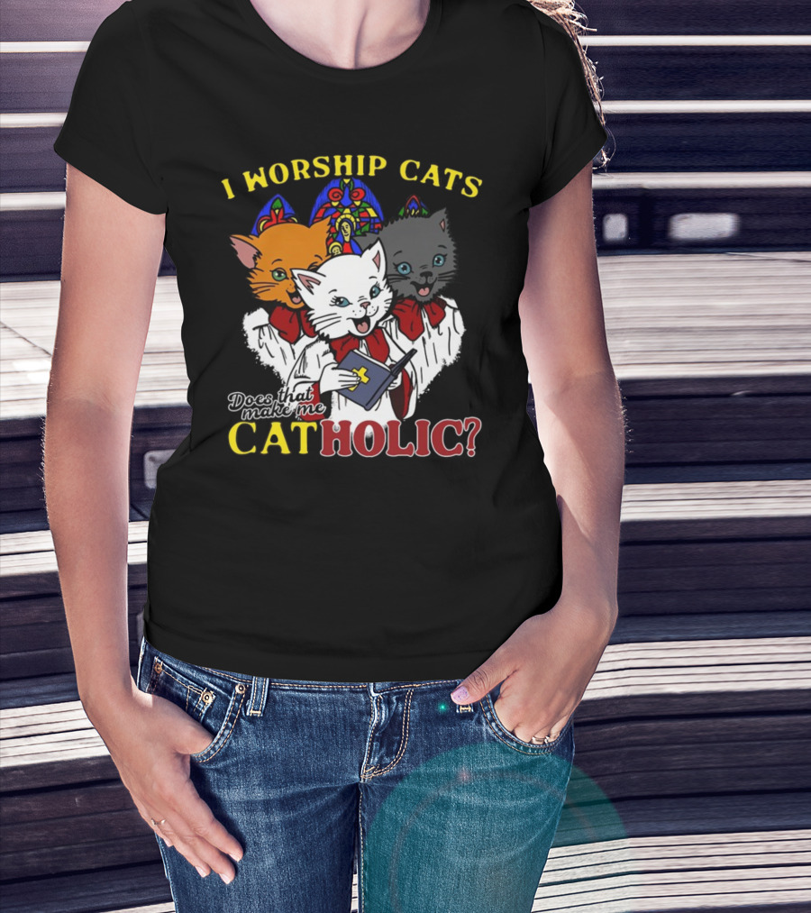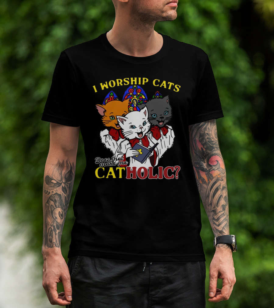 I Worship Cats Does That Make Me Catholic Cat Choir Stained Glass T-Shirt