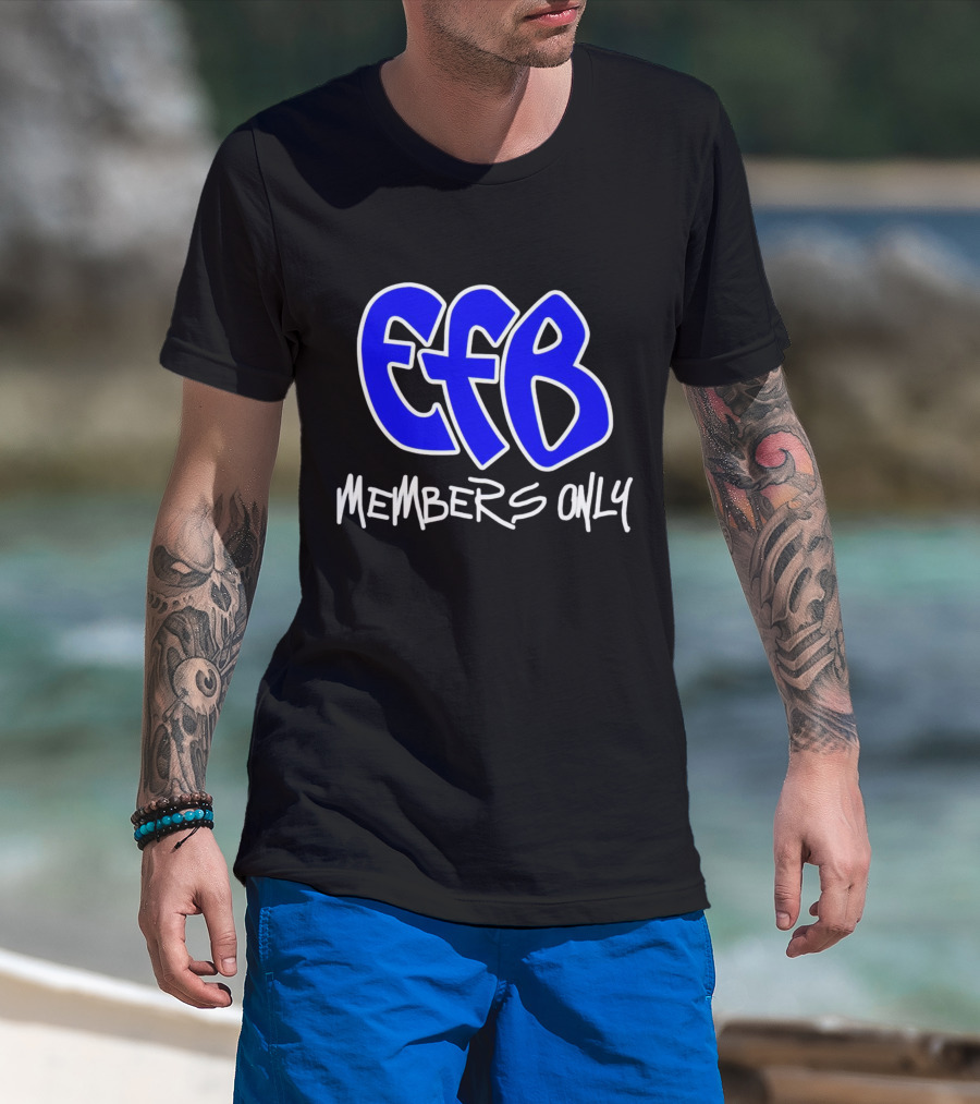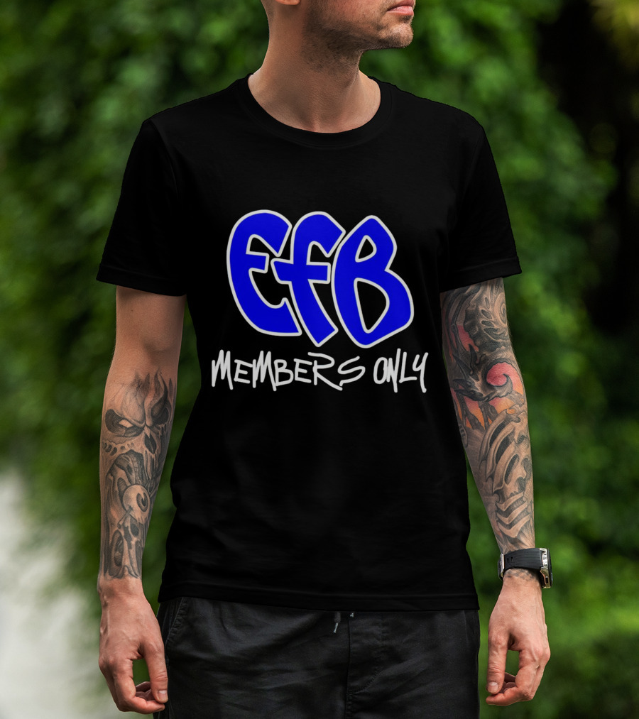 The Efb Members Only T-shirt is designed for everyday wear and a consistent fit. Fabric is pre-shrunk ring-spun cotton with durable stitching. See the size chart below for exact measurements.