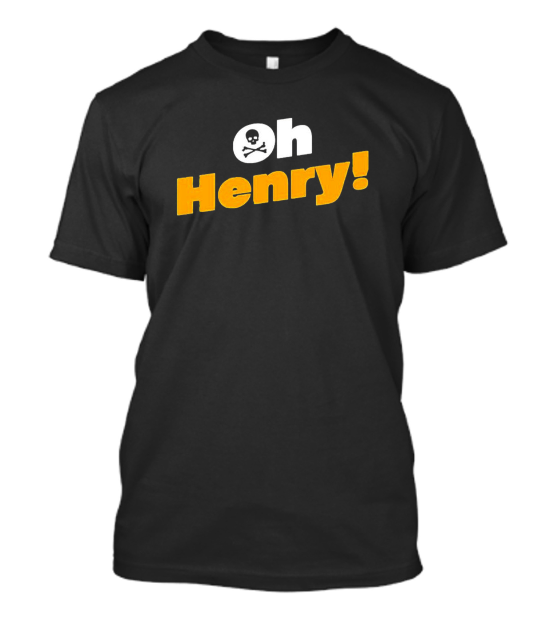 The Oh Henry Skull and Crossbones T-shirt is designed for everyday wear and a consistent fit. Fabric is pre-shrunk ring-spun cotton with durable stitching. See the size chart below for exact measurements.