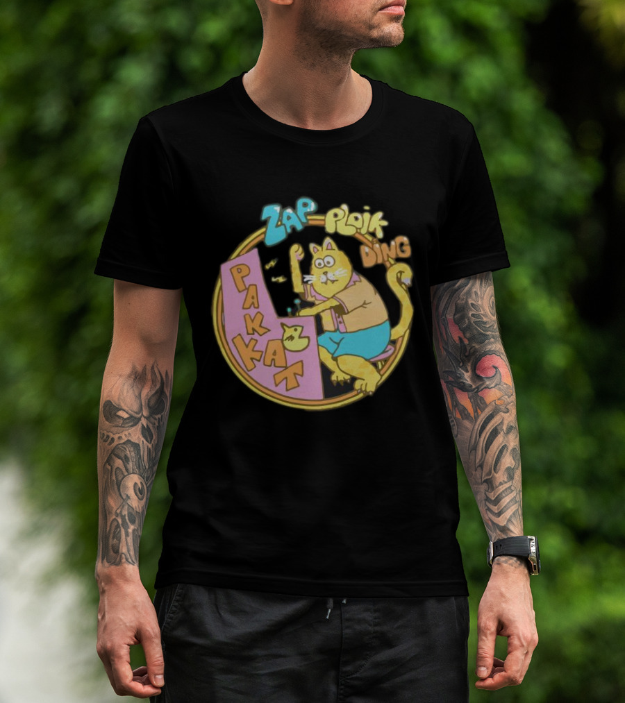 The Stranger Things Season 3 Dustin Pakkat Zap Ploik Ding Retro Cartoon Cat T-shirt is designed for everyday wear and a consistent fit. Fabric is pre-shrunk ring-spun cotton with durable stitching. See the size chart below for exact measurements.