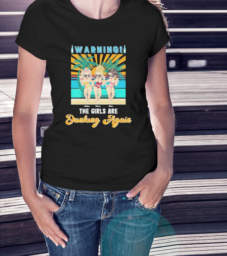 Warning The Girls Are Drinking Again Vintage Beach Party Sun Palm Trees T-Shirt