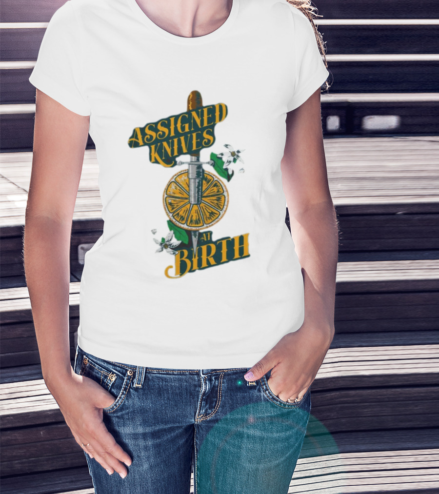 ASSIGNED KNIVES AT BIRTH Knife And Orange Slice With Flowers T-Shirt
