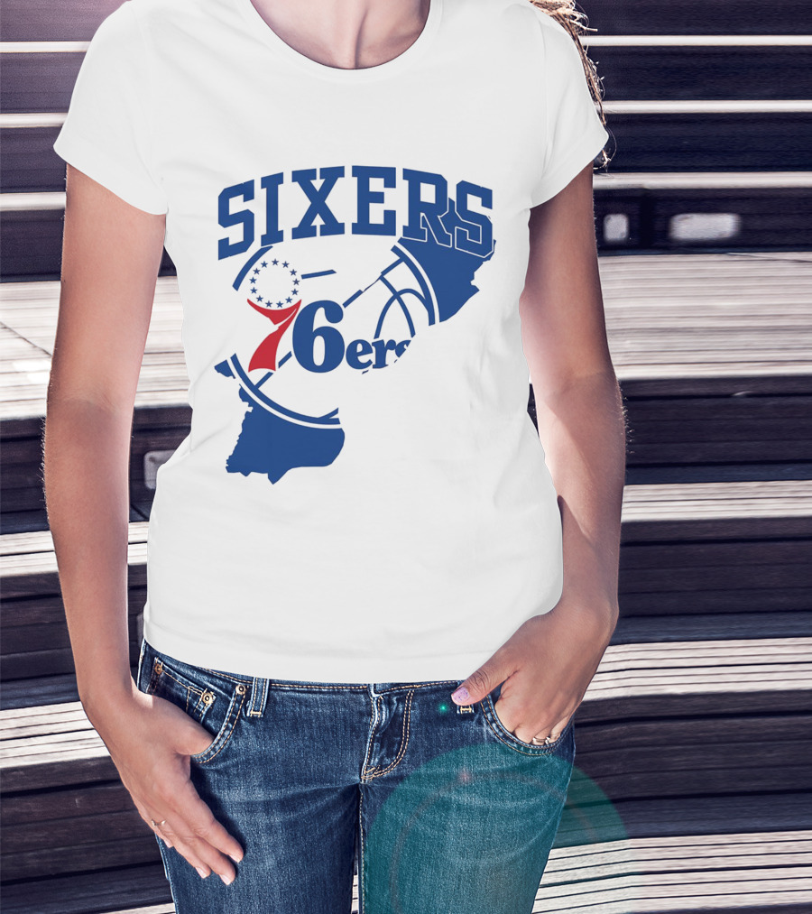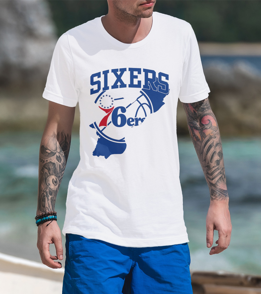 Philadelphia Sixers 76ers Map Basketball Pennsylvania Shape T-Shirt