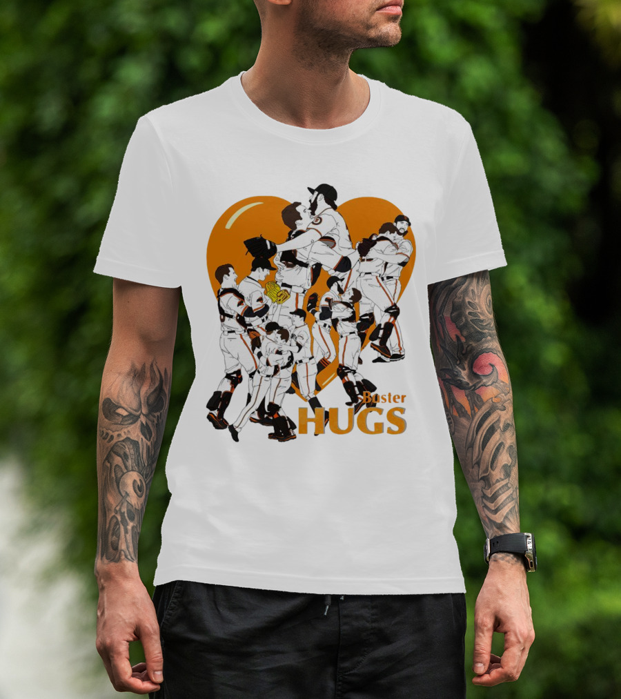 Buster Hugs San Francisco Giants Orange Heart Players Embrace T-Shirt