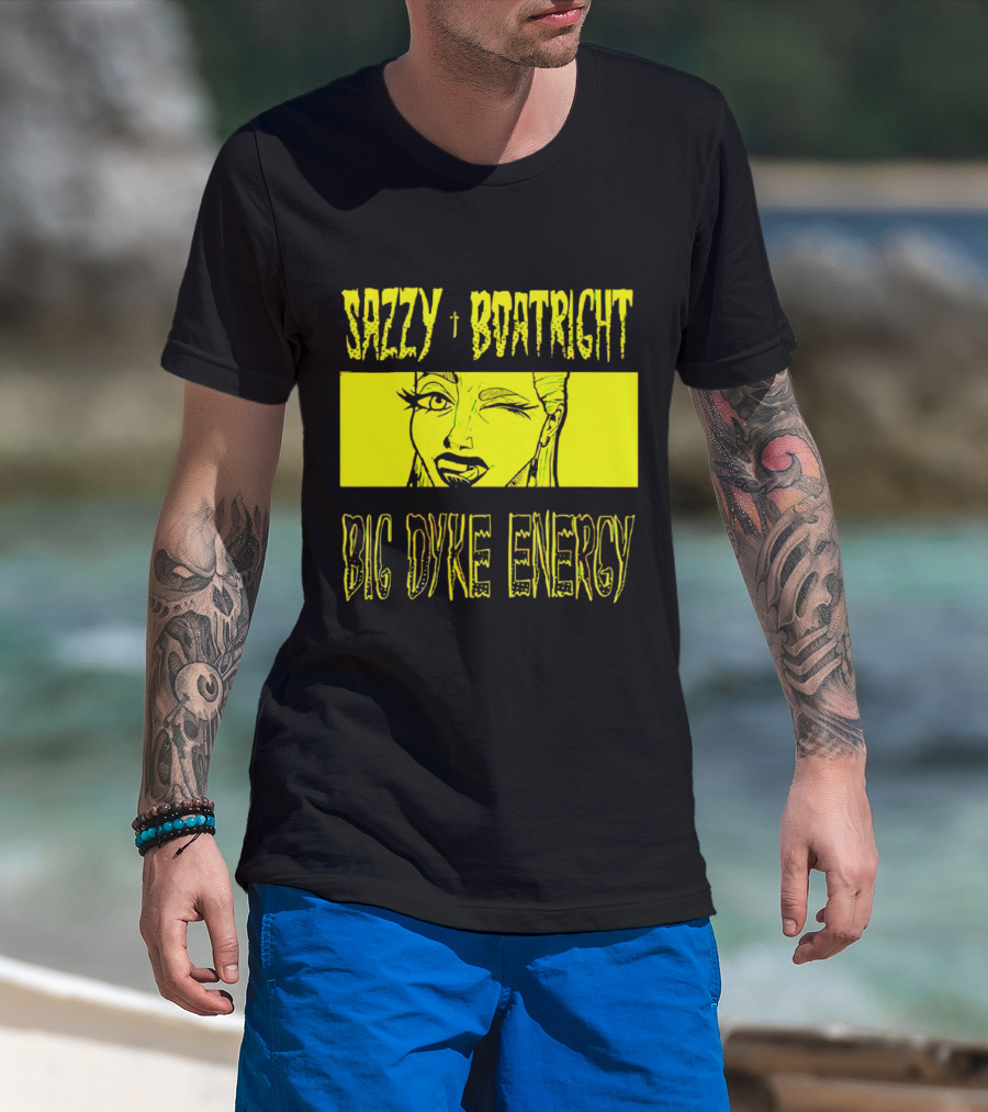 The Sazzy Boatright Big Dyke Energy Winking Yellow Comic T-shirt is designed for everyday wear and a consistent fit. Fabric is pre-shrunk ring-spun cotton with durable stitching. See the size chart below for exact measurements.
