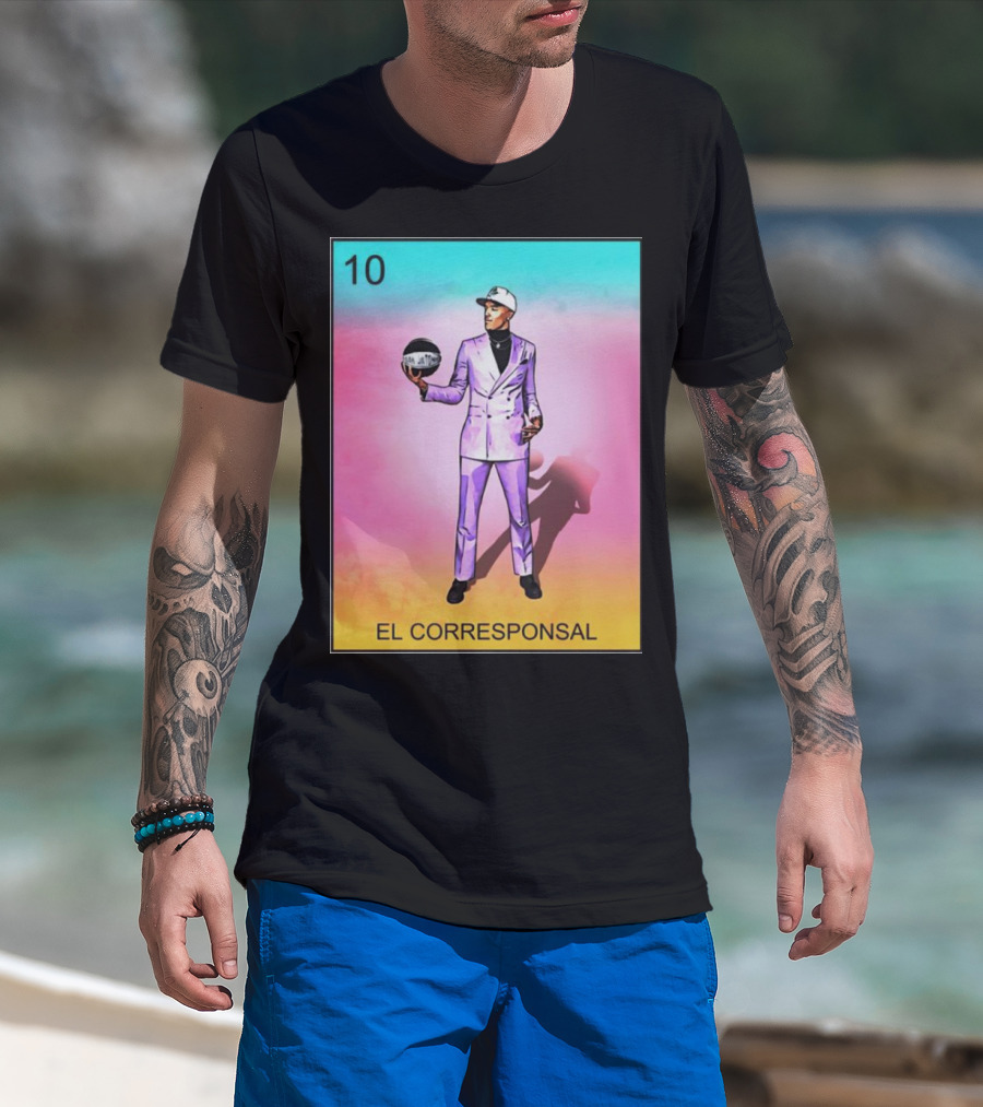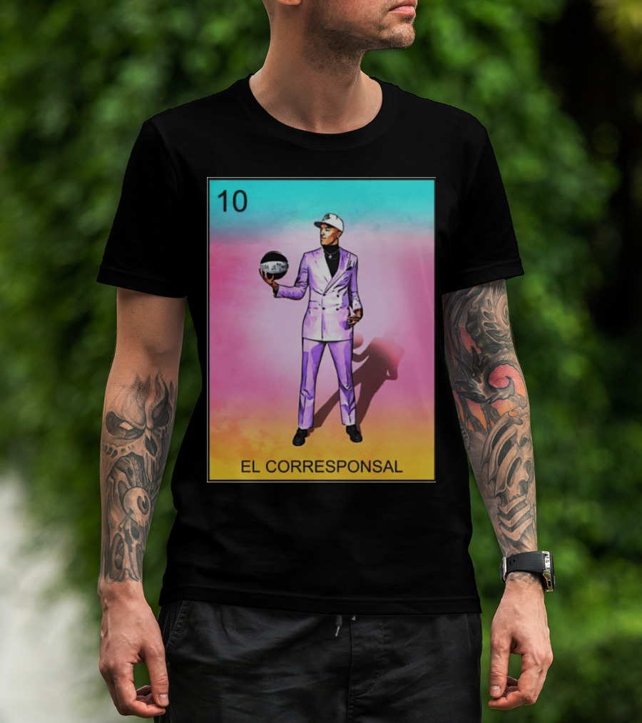 10 El Corresponsal Lotería Card Style In Lavender Suit Holding Basketball T-Shirt