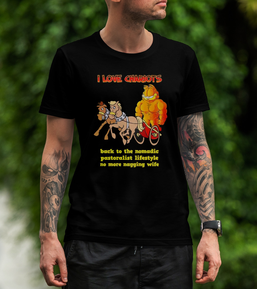 I Love Chariots Garfield Back To The Nomadic Pastoralist Lifestyle No More Nagging Wife T-Shirt