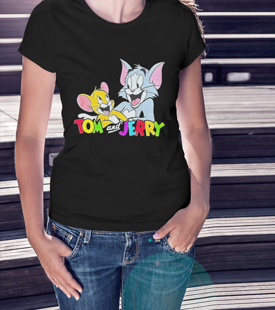Tom And Jerry Colorful Smiling Cartoon Characters T-Shirt