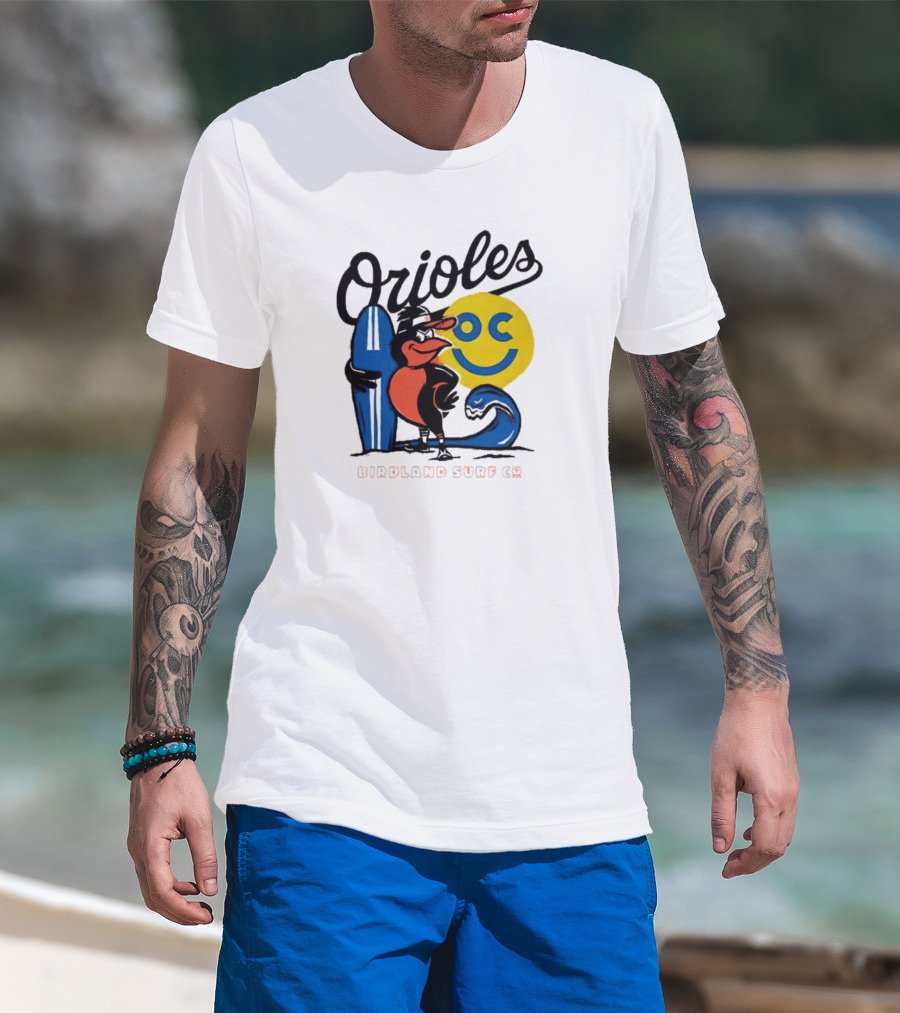 Orioles Birdland Surf Co Smiling Sun Surfboard T-Shirt