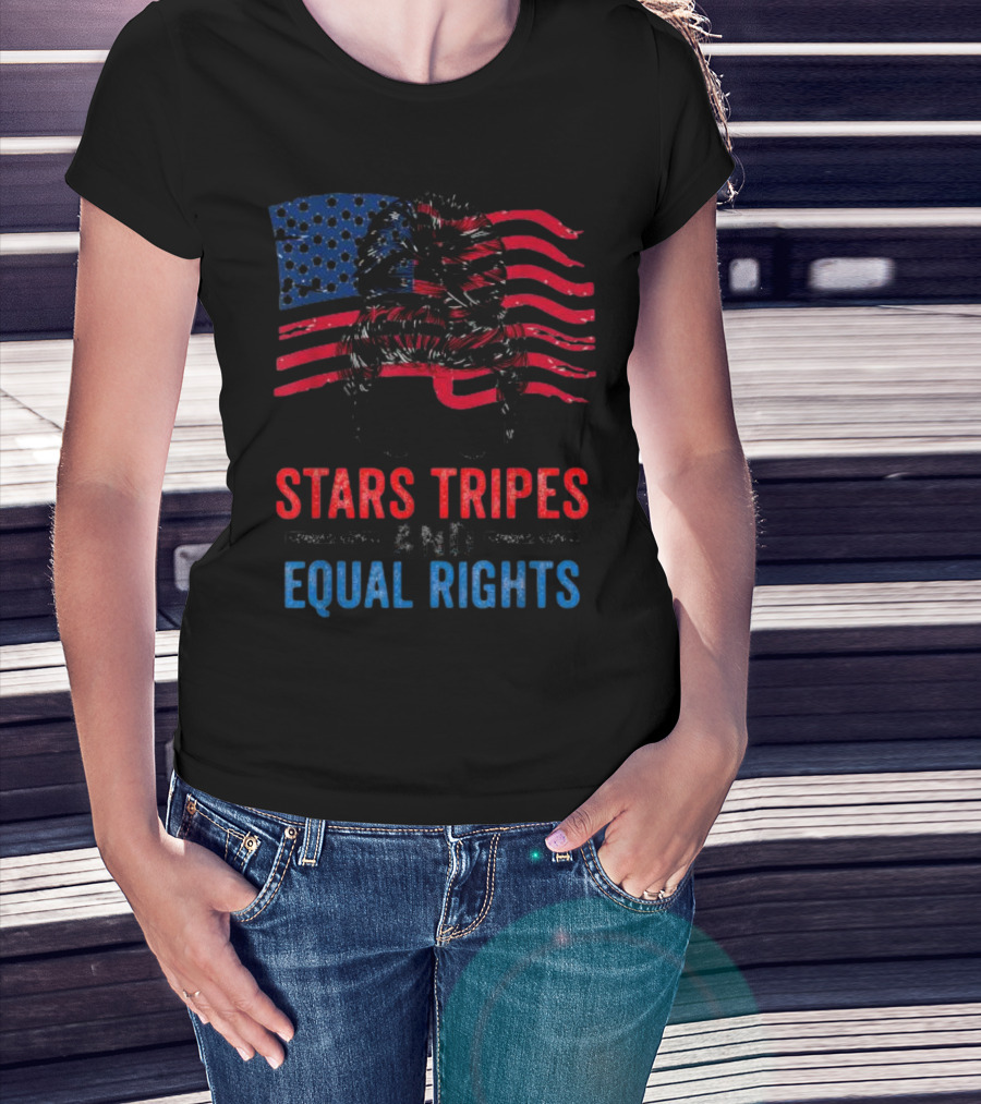 Stars Stripes And Equal Rights Messy Bun American Flag T-Shirt