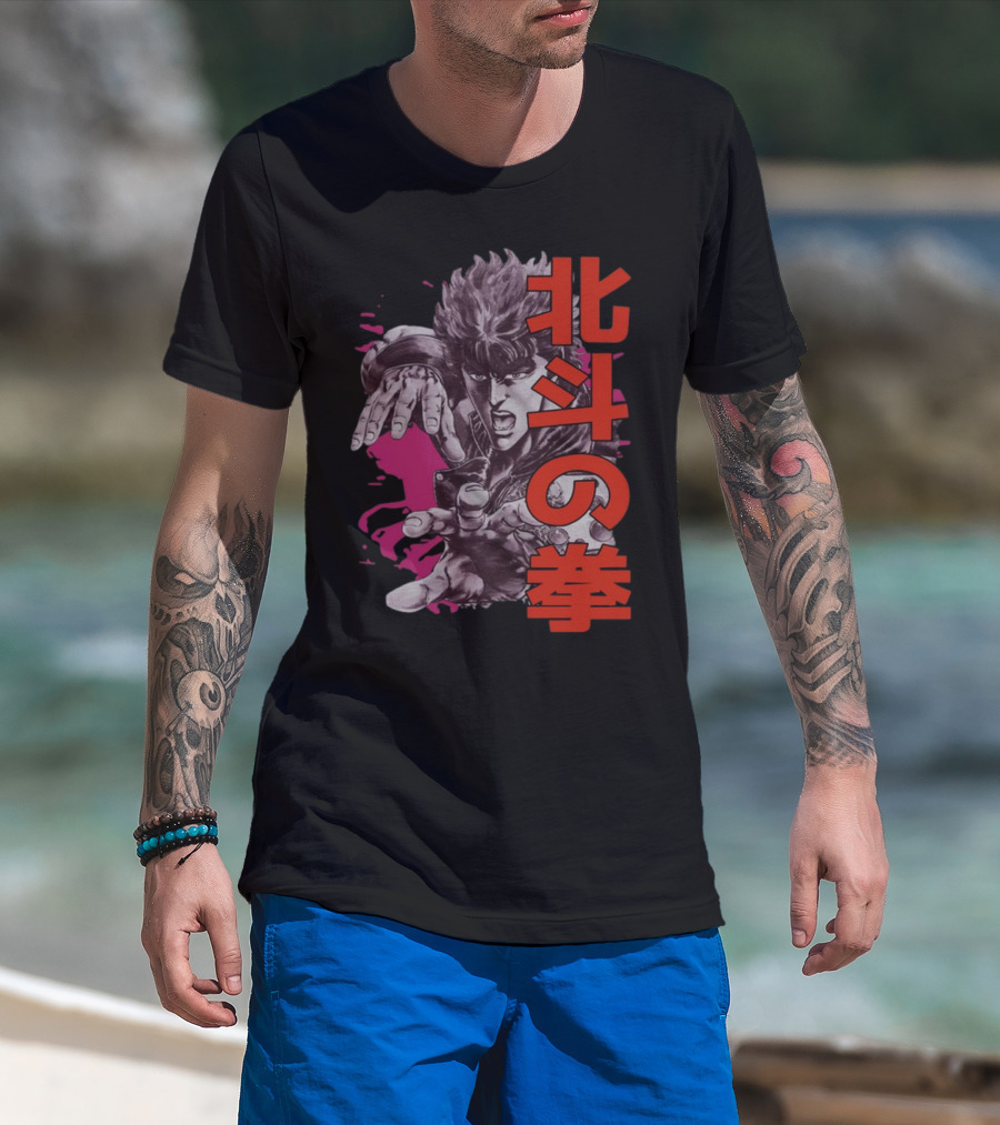 The Fist Of The North Star Kenshiro T-shirt is designed for everyday wear and a consistent fit. Fabric is pre-shrunk ring-spun cotton with durable stitching. See the size chart below for exact measurements.