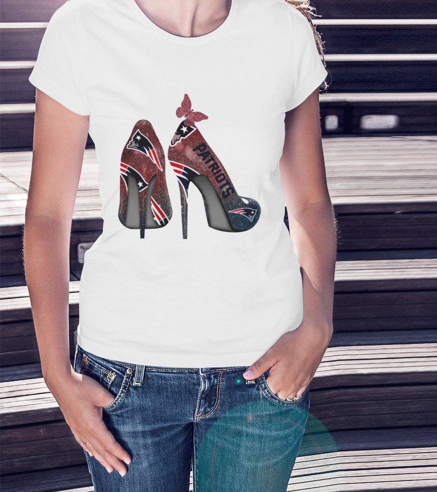New England Patriots Glitter High Heel Butterfly T-Shirt