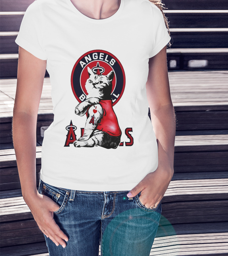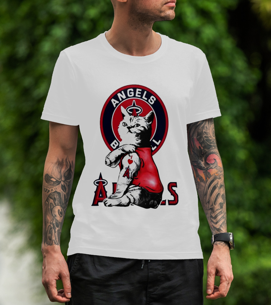 Tattoo Cat Los Angeles Angels Baseball Logo I Love Angels T-Shirt