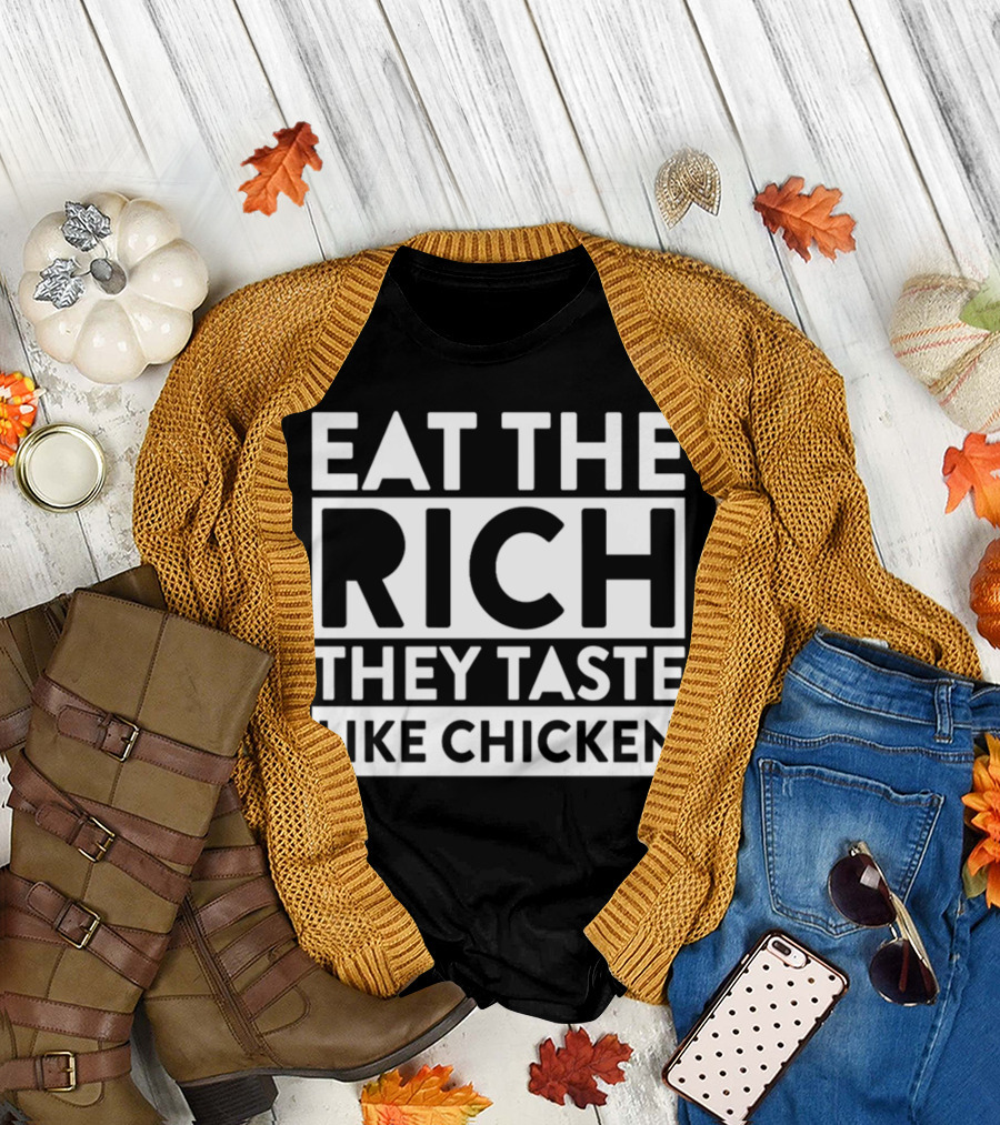 The Eat The Rich They Taste Like Chicken T-shirt is designed for everyday wear and a consistent fit. Fabric is pre-shrunk ring-spun cotton with durable stitching. See the size chart below for exact measurements.
