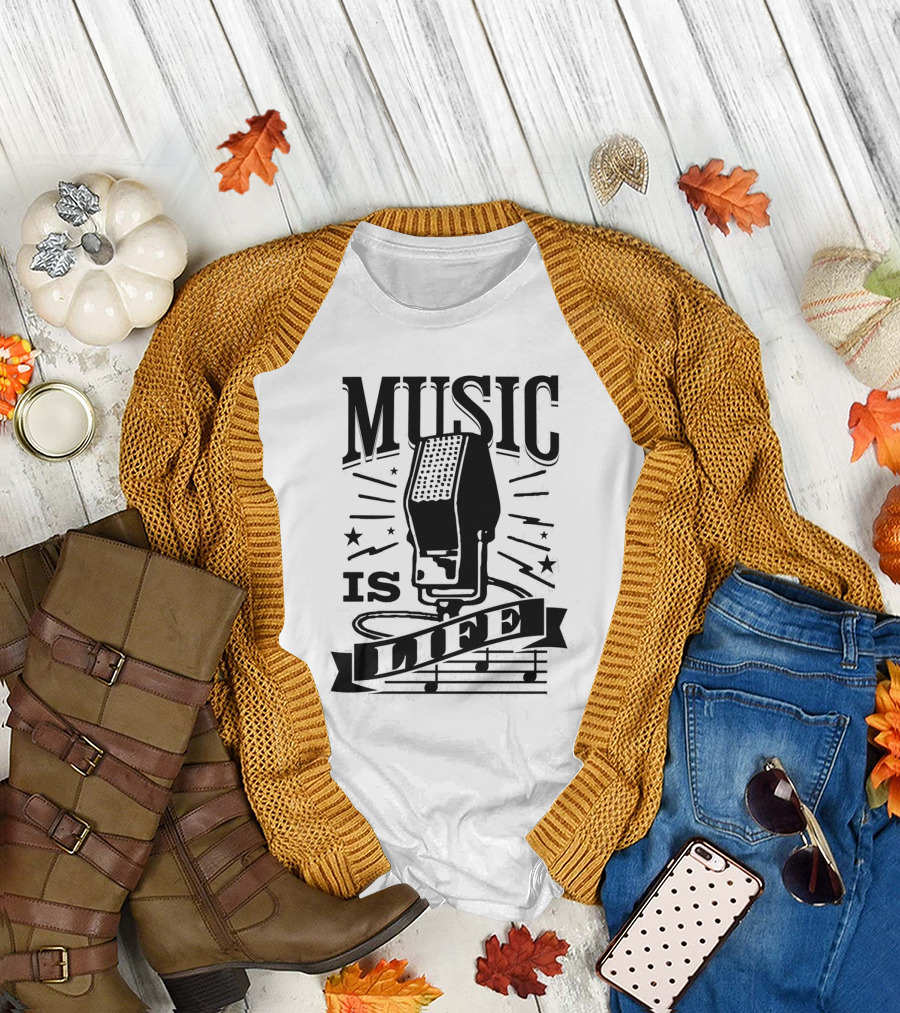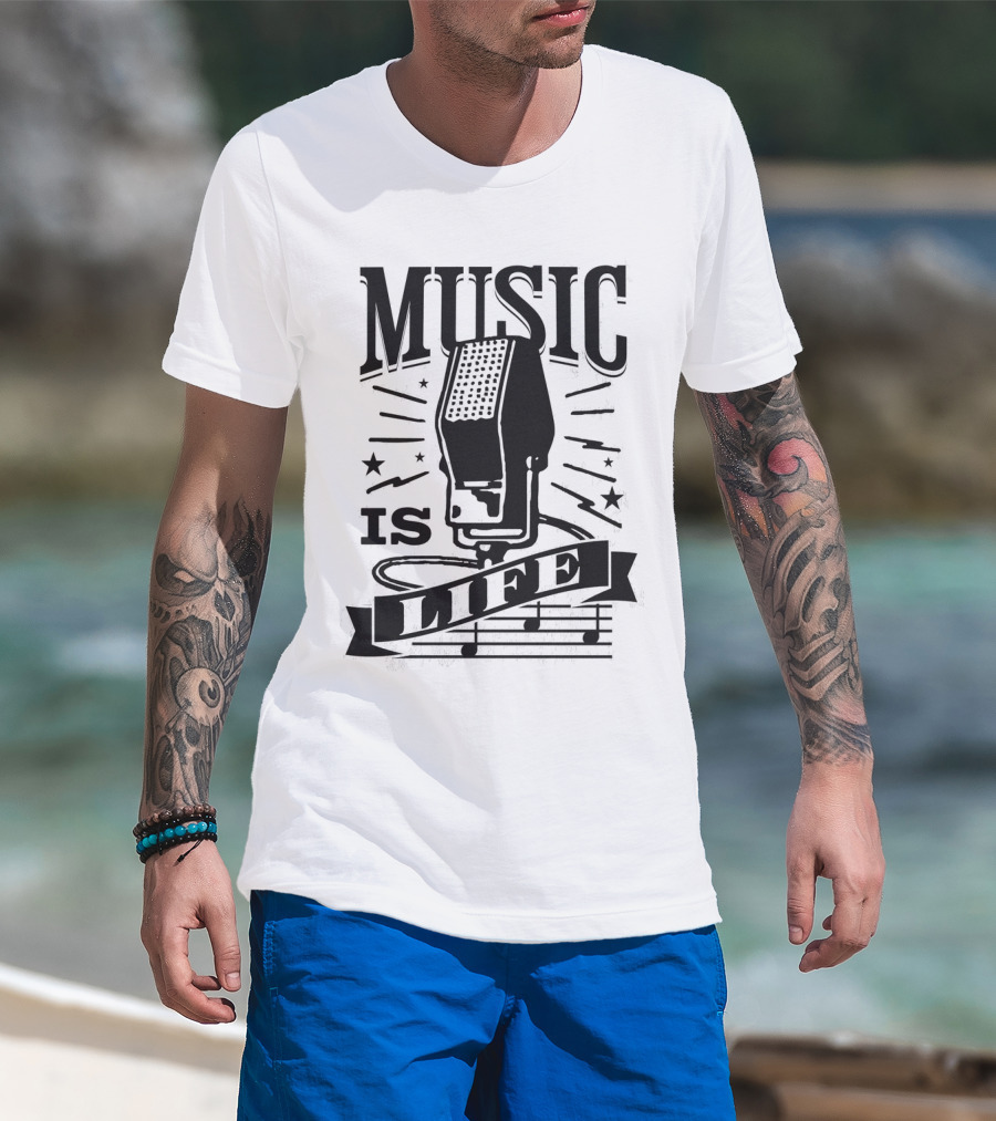 The Music Is Life Retro Microphone Notes Stars T-shirt is designed for everyday wear and a consistent fit. Fabric is pre-shrunk ring-spun cotton with durable stitching. See the size chart below for exact measurements.