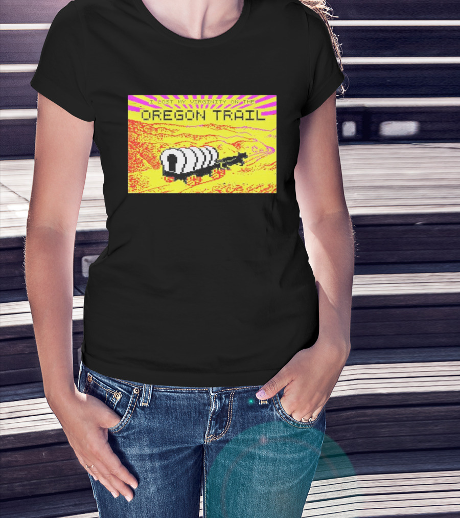 I Lost My Virginity On The Oregon Trail Retro Pixel Art Covered Wagon 80s T-Shirt