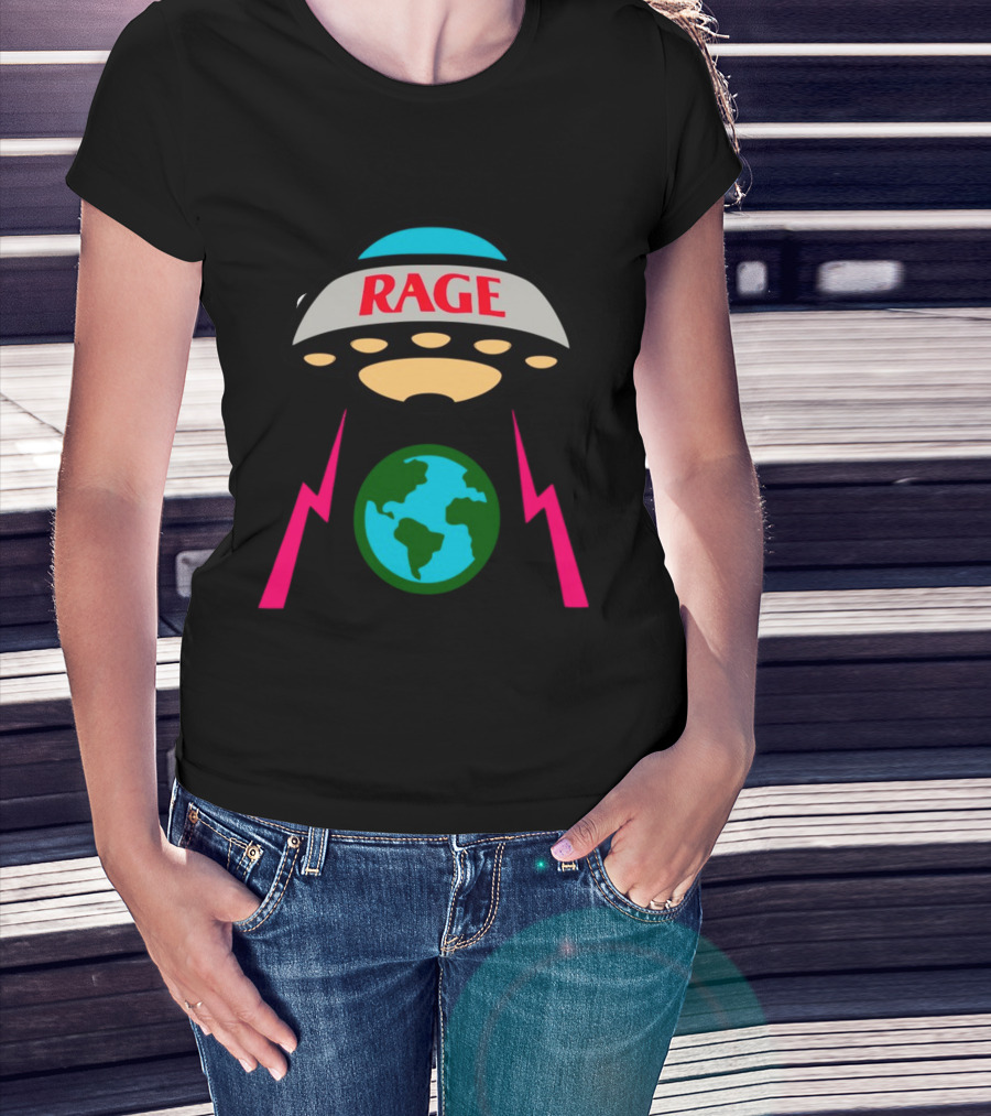 The Members Of The Rage UFO Earth Lightnings T-shirt is designed for everyday wear and a consistent fit. Fabric is pre-shrunk ring-spun cotton with durable stitching. See the size chart below for exact measurements.