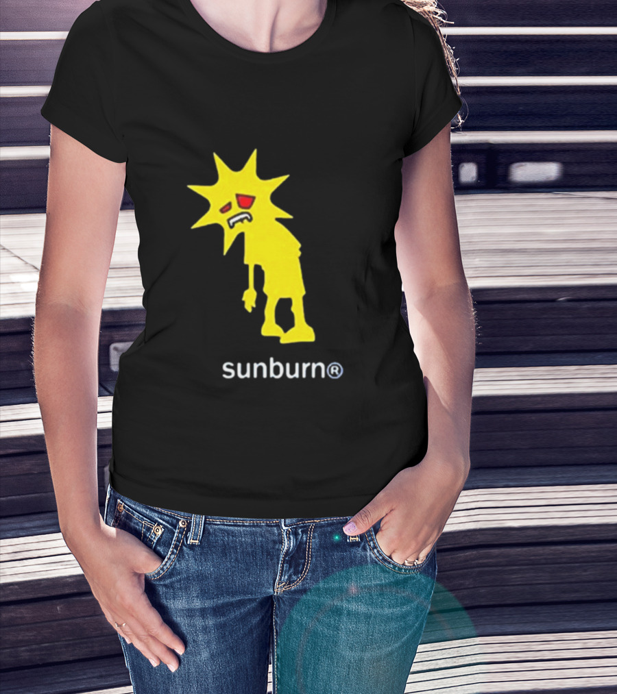 Sunburn Tired Cartoon Sun With Red Eyes And Trademark T-Shirt
