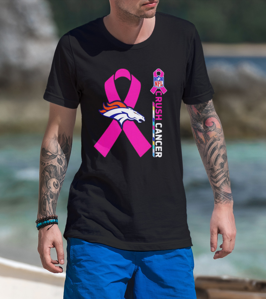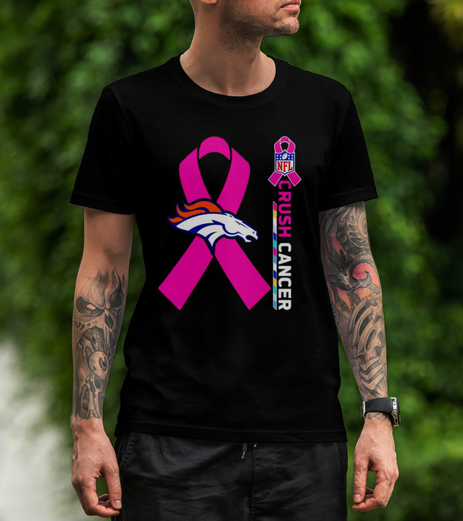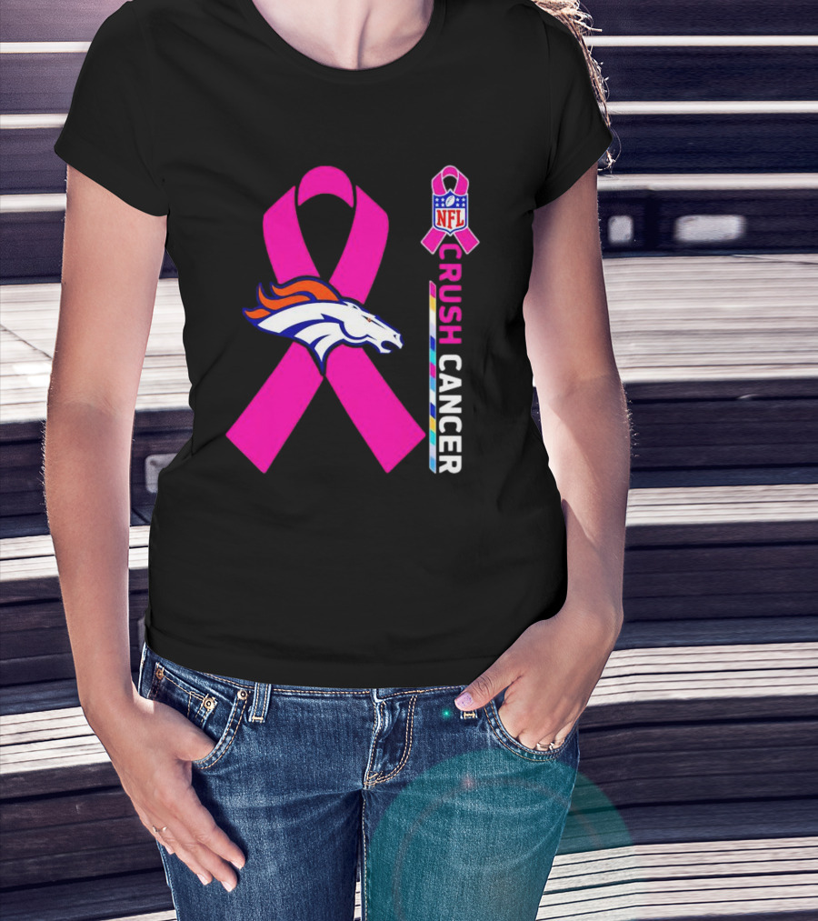 Denver Broncos NFL Pink Ribbon Crush Cancer Campaign T-Shirt