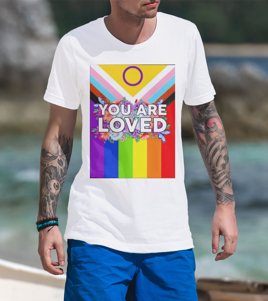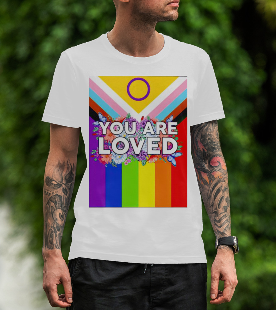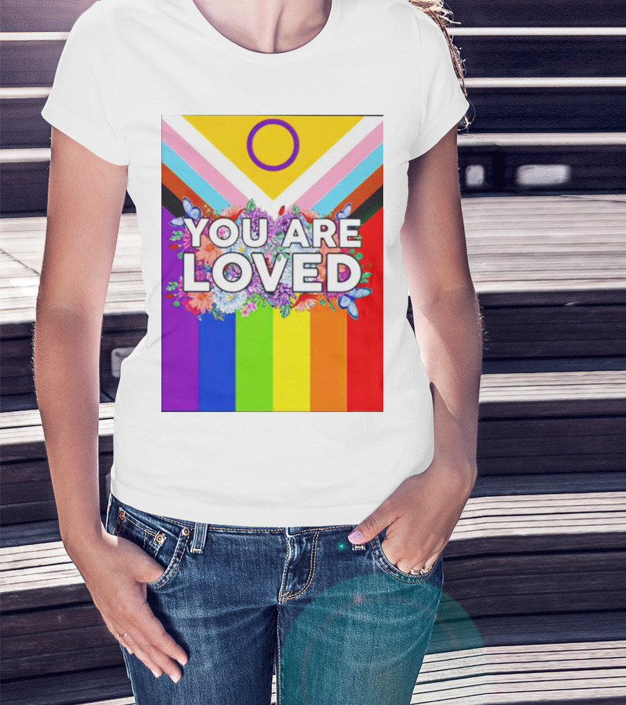 You Are Loved Pride Flag Intersex Inclusion Rainbow Floral Butterflies T-Shirt