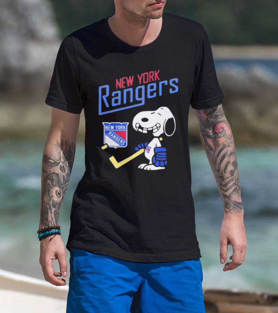 The New York Rangers Snoopy Hockey Player T-shirt is designed for everyday wear and a consistent fit. Fabric is pre-shrunk ring-spun cotton with durable stitching. See the size chart below for exact measurements.