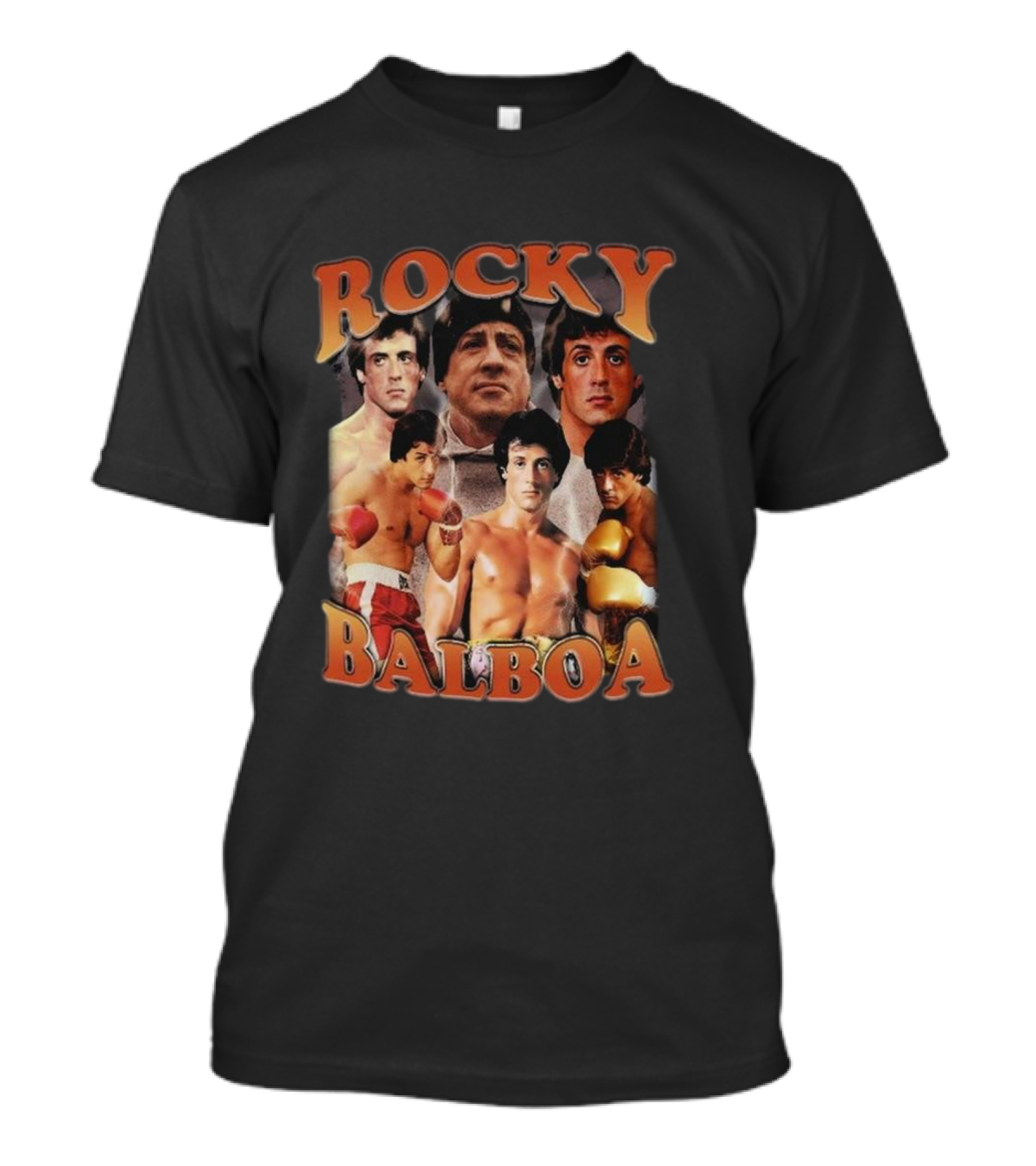 The Rocky Balboa Movie Character Boxing Legends Montage T-shirt is designed for everyday wear and a consistent fit. Fabric is pre-shrunk ring-spun cotton with durable stitching. See the size chart below for exact measurements.