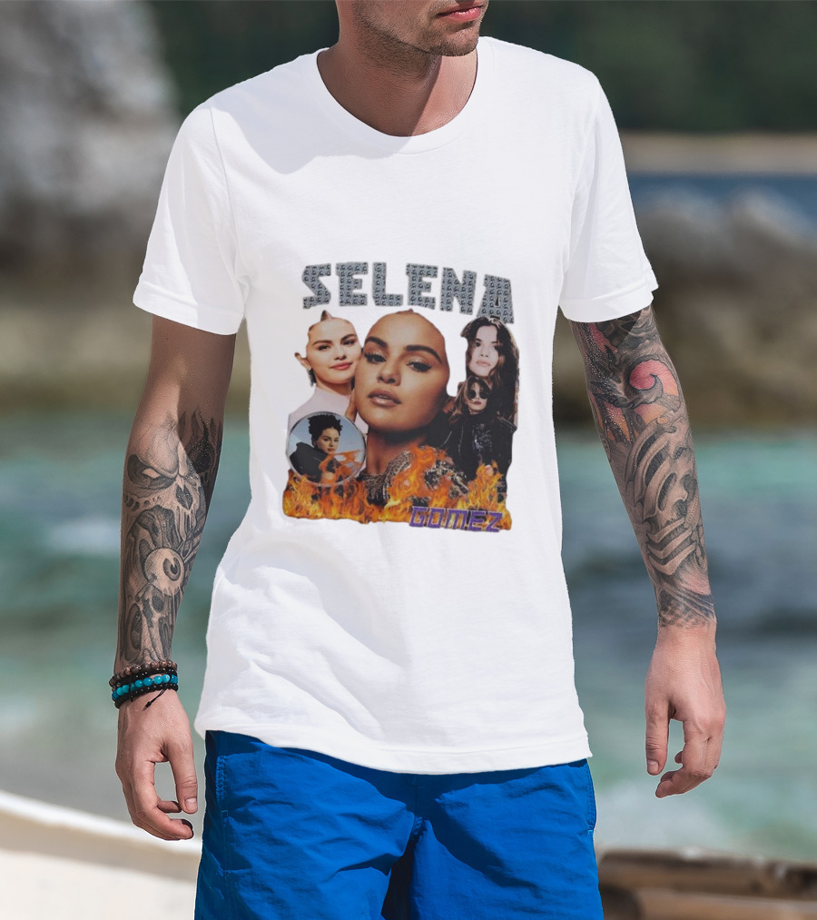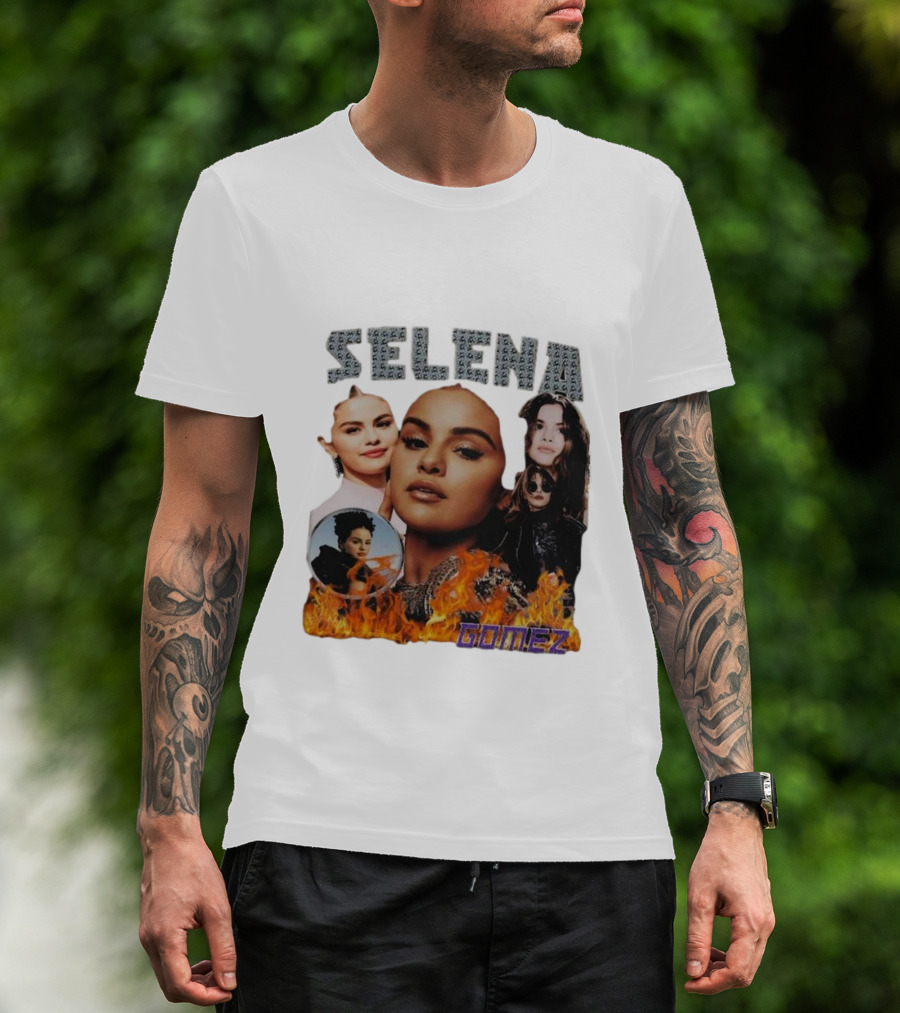 The Selena Gomez Flame Collage Homage T-shirt is designed for everyday wear and a consistent fit. Fabric is pre-shrunk ring-spun cotton with durable stitching. See the size chart below for exact measurements.