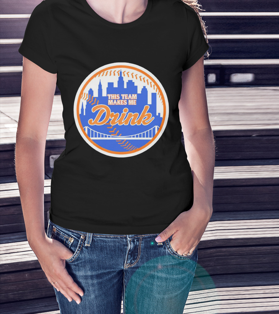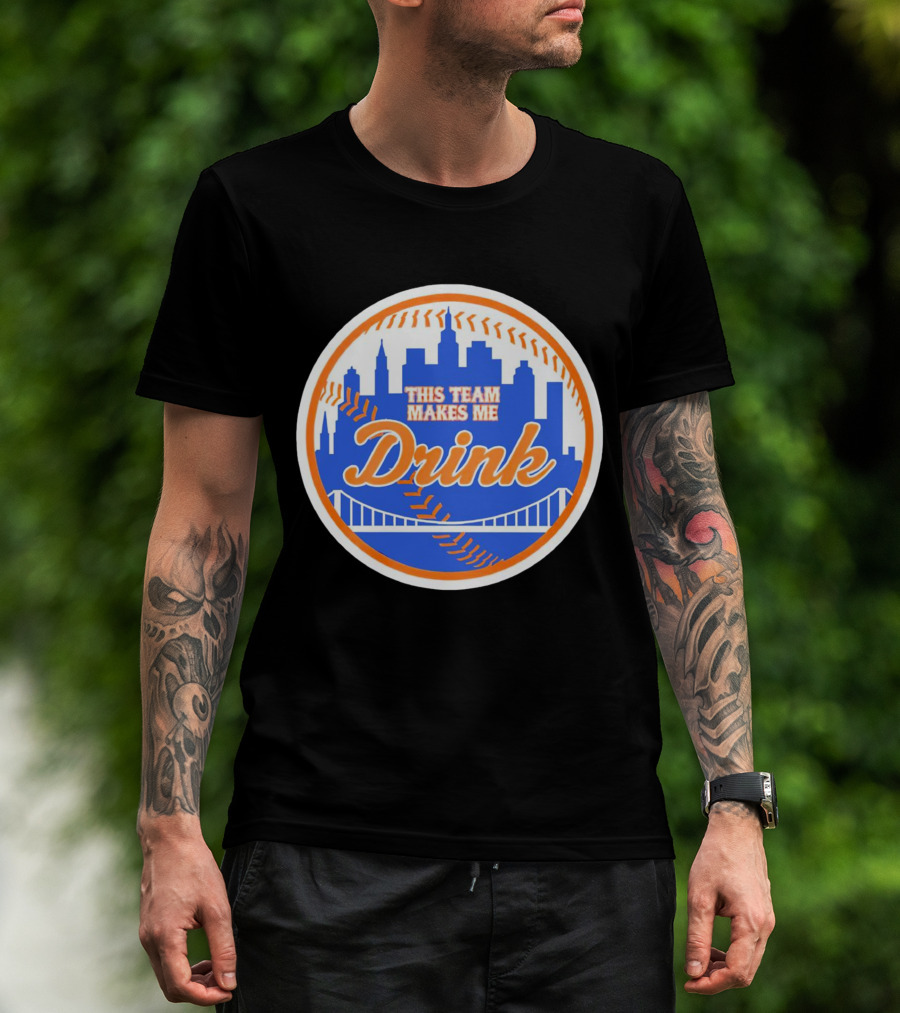 This Team Makes Me Drink New York Mets Skyline Baseball T-Shirt