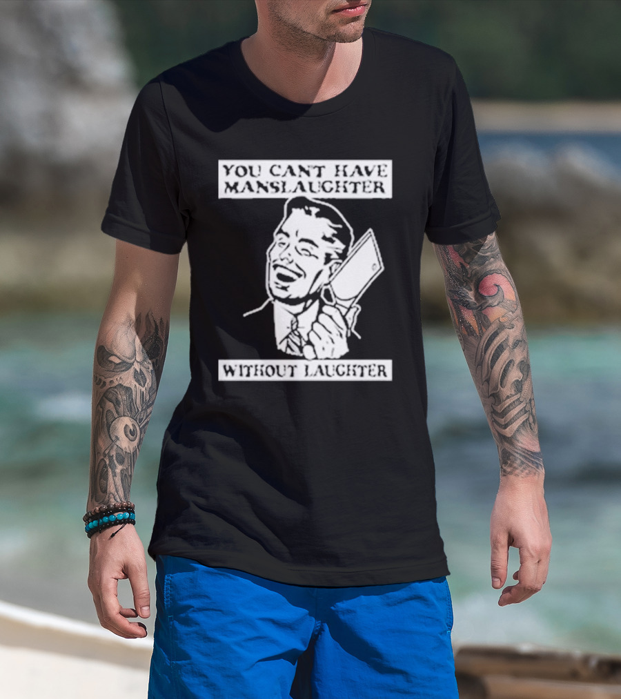You Can't Have Manslaughter Without Laughter Retro Style Man With Cleaver T-Shirt