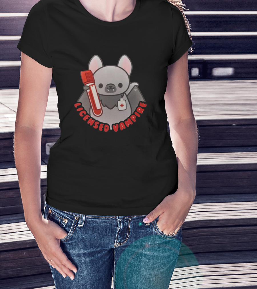 Licensed Vampire Bat Holding Blood Sample Tube T-Shirt