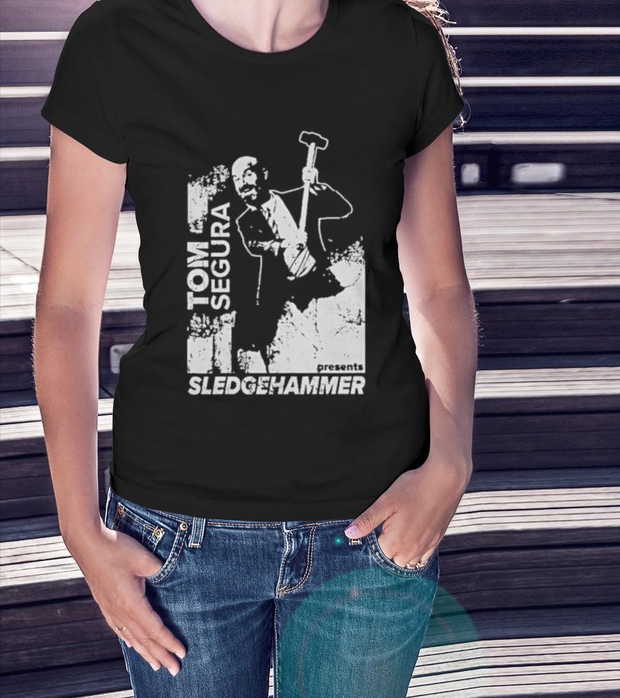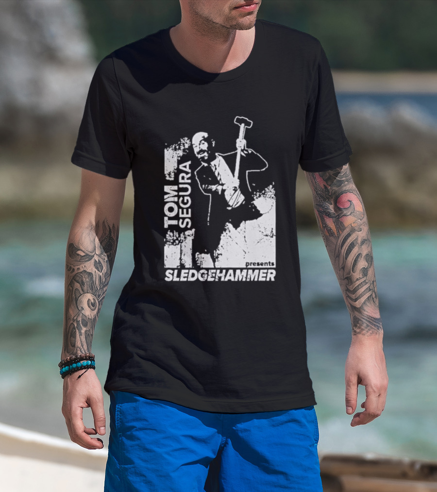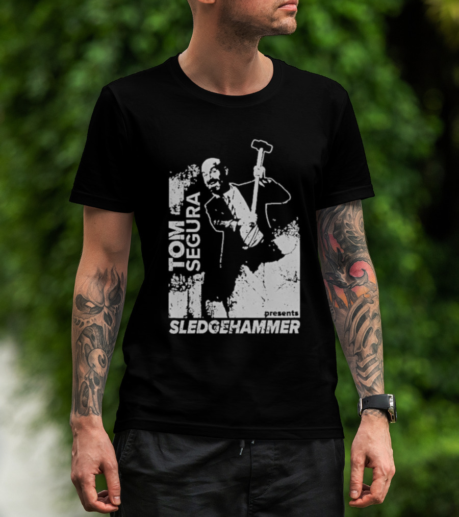 The Tom Segura Presents Sledgehammer T-shirt is designed for everyday wear and a consistent fit. Fabric is pre-shrunk ring-spun cotton with durable stitching. See the size chart below for exact measurements.