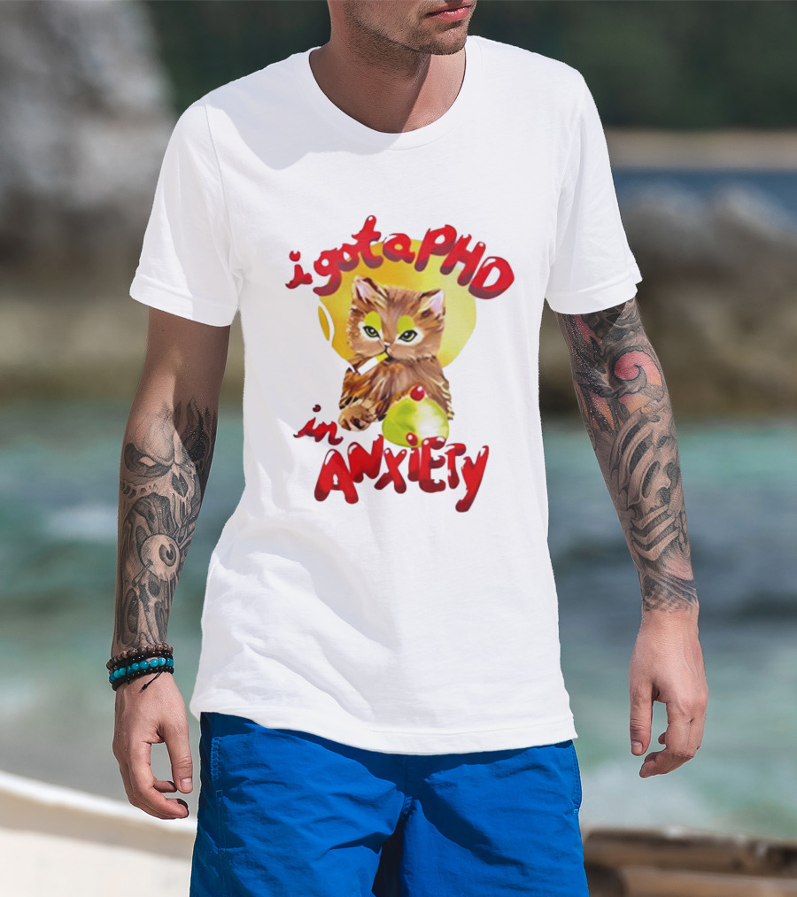 The Cat I Gota PhD in Anxiety T-shirt is designed for everyday wear and a consistent fit. Fabric is pre-shrunk ring-spun cotton with durable stitching. See the size chart below for exact measurements.