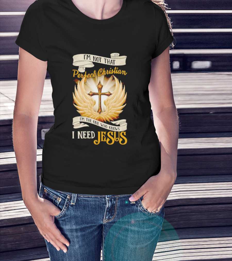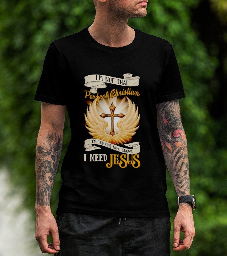 I'm Not That Perfect Christian I Need Jesus Cross With Wings T-Shirt