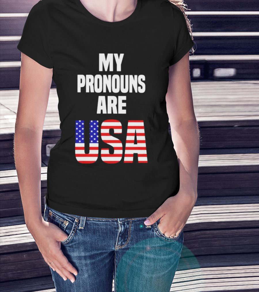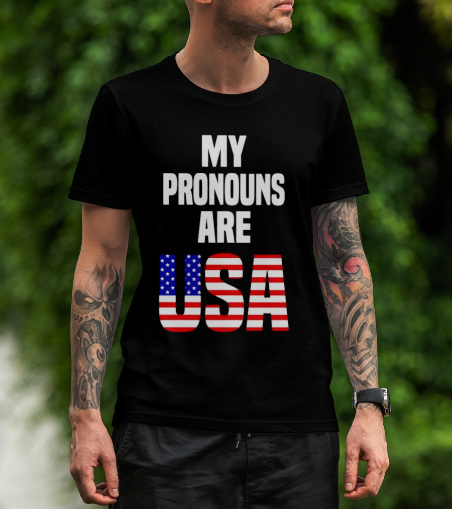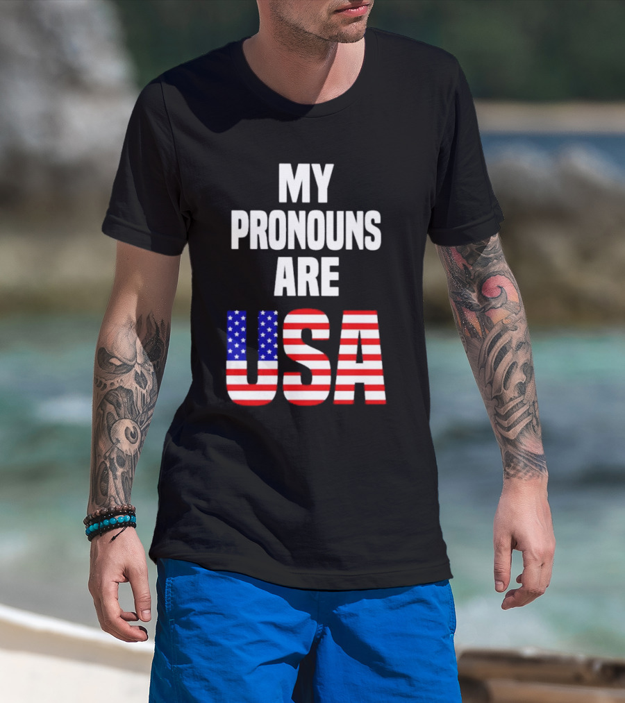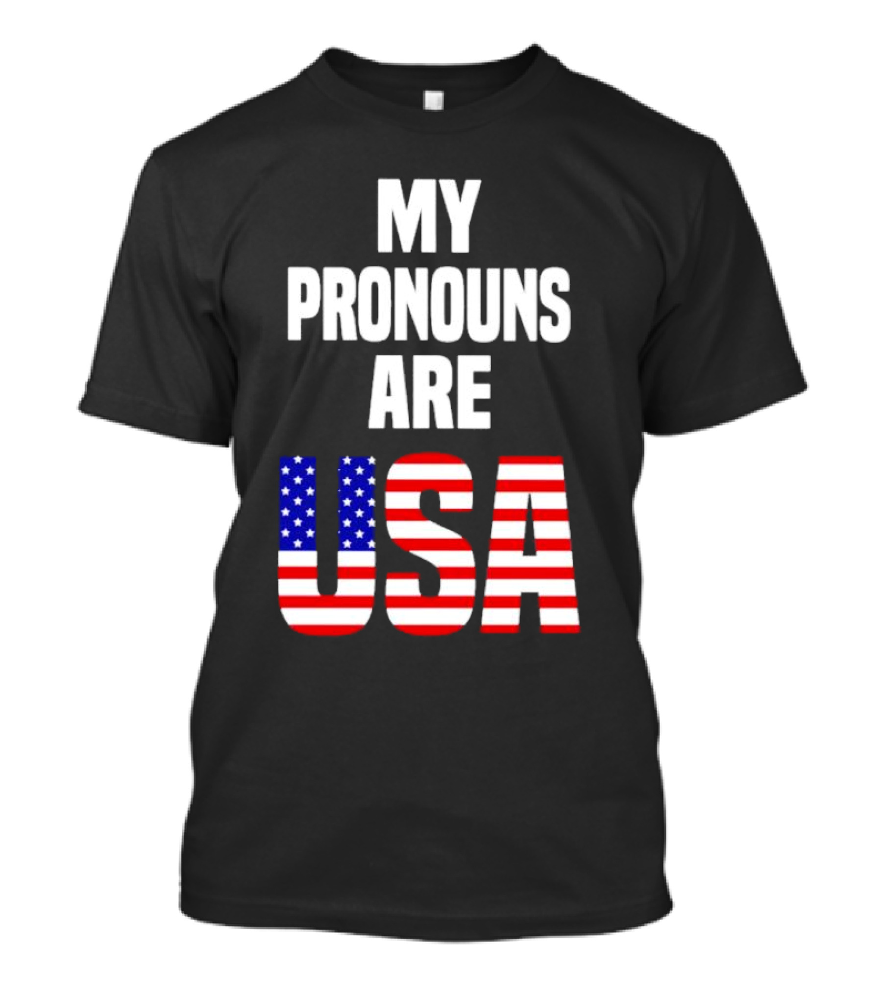My Pronouns Are USA Flag Text Online Merchandise T-Shirt