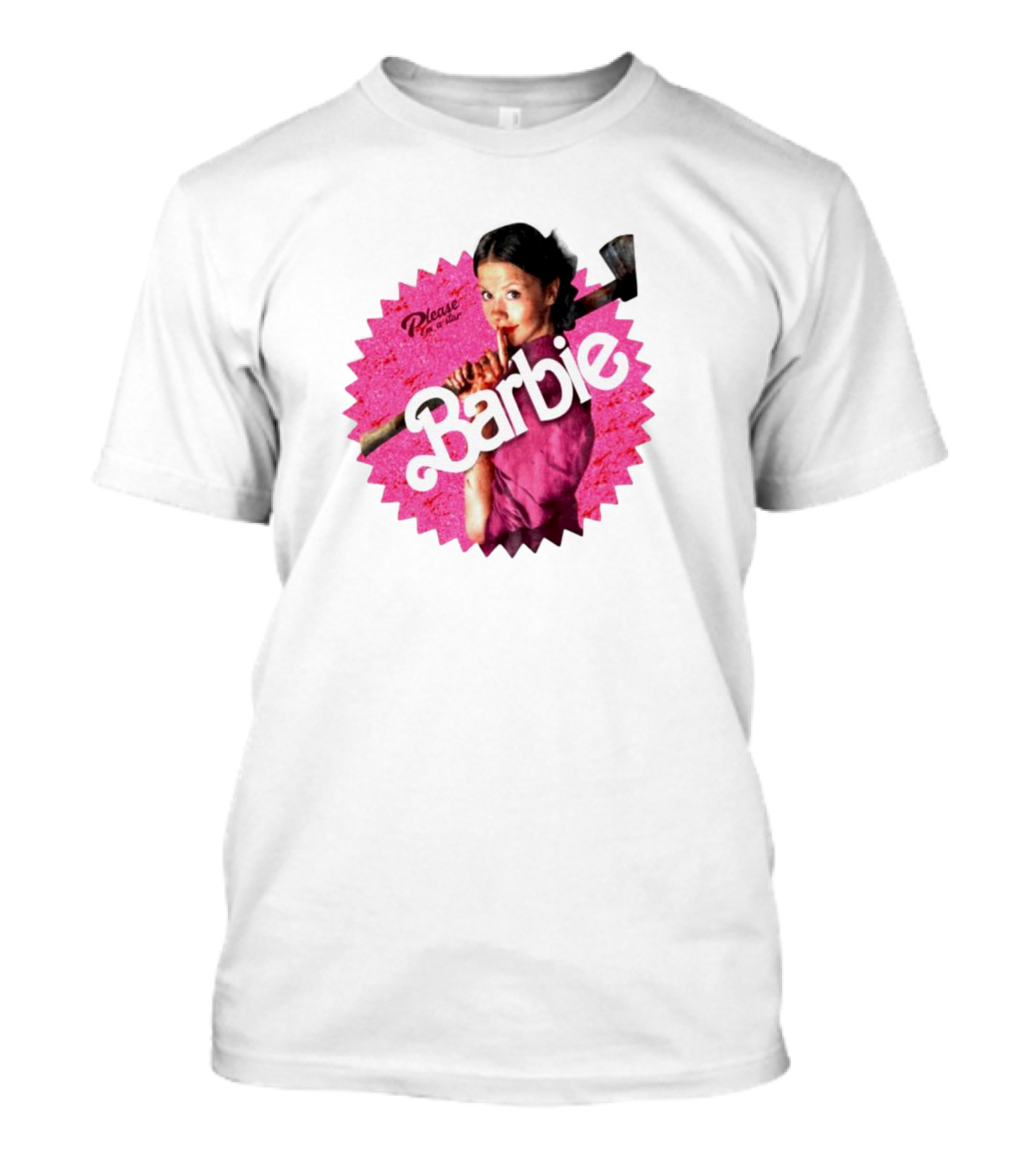 The Please I'm a Star Barbie Pink Circle T-shirt is designed for everyday wear and a consistent fit. Fabric is pre-shrunk ring-spun cotton with durable stitching. See the size chart below for exact measurements.