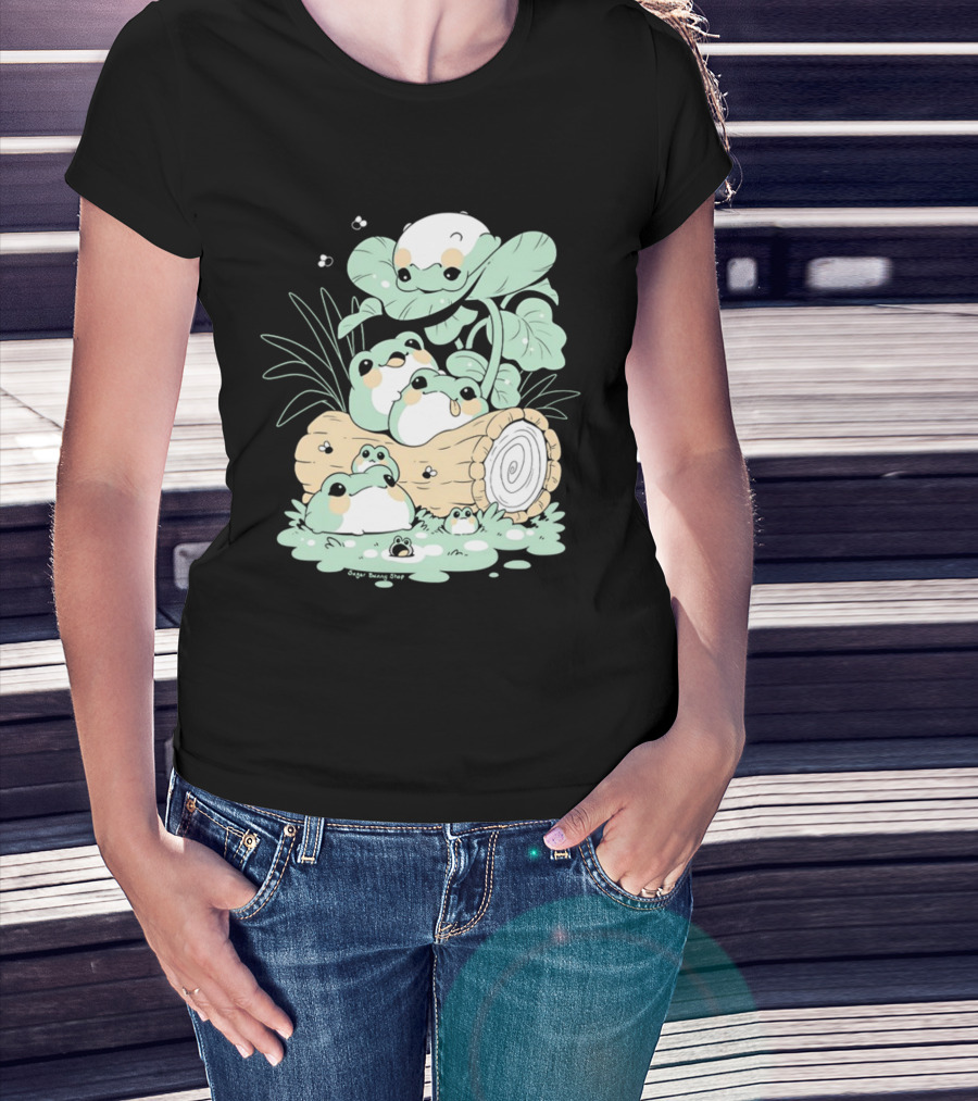 Sugoi Bunbu Shop Blob Frogs Log And Leaves T-Shirt