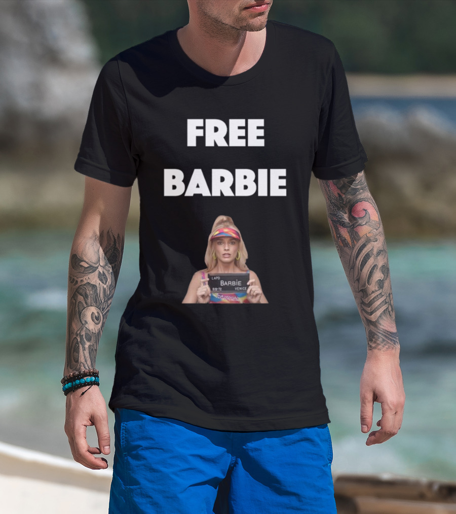 The Free Barbie Mugshot Venice T-shirt is designed for everyday wear and a consistent fit. Fabric is pre-shrunk ring-spun cotton with durable stitching. See the size chart below for exact measurements.