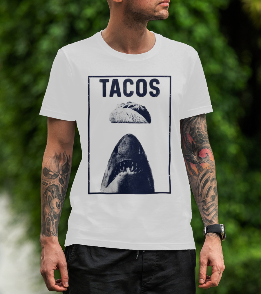 The Tacos Shark Encounter T-shirt is designed for everyday wear and a consistent fit. Fabric is pre-shrunk ring-spun cotton with durable stitching. See the size chart below for exact measurements.
