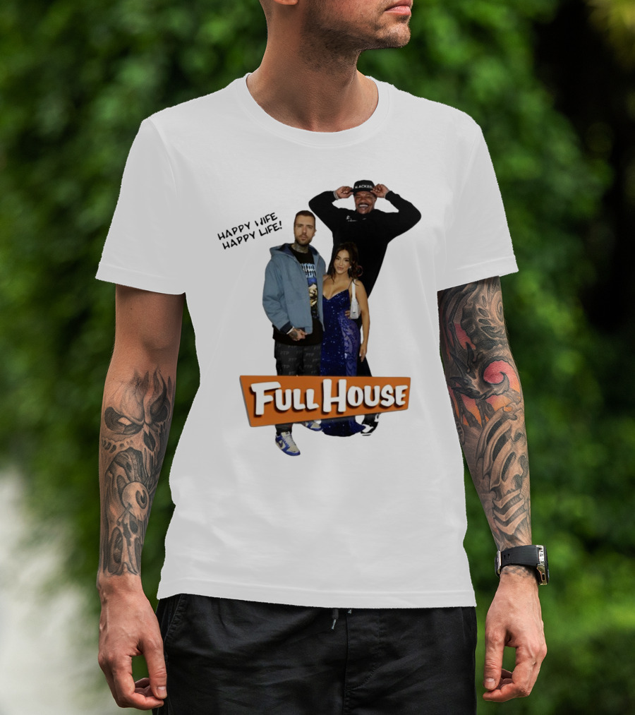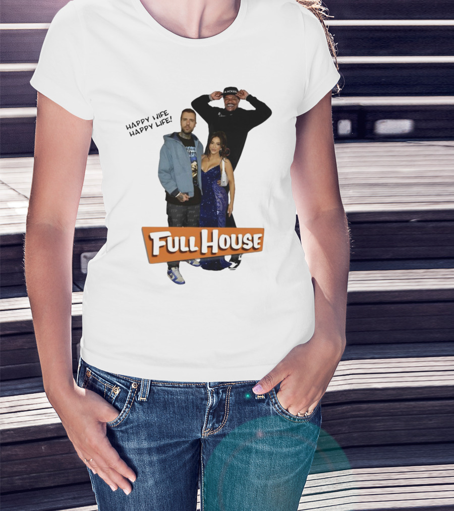 The Full House Happy Wife Happy Life T-shirt is designed for everyday wear and a consistent fit. Fabric is pre-shrunk ring-spun cotton with durable stitching. See the size chart below for exact measurements.