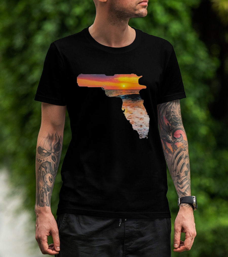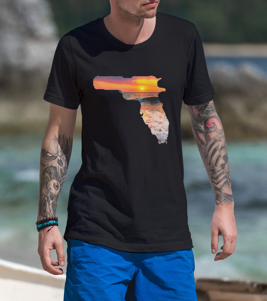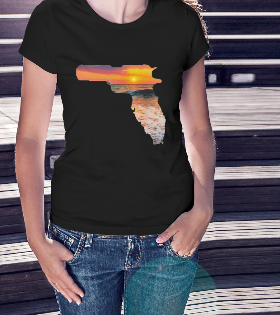 Florida The Gunshine State Gun Map Sunset Beach Scene T-Shirt