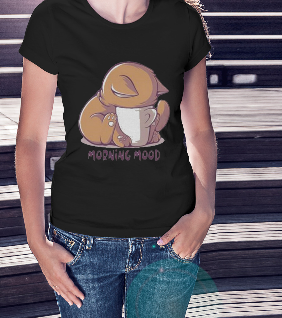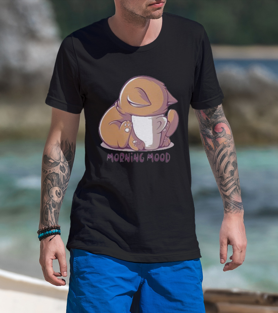 The Morning Mood Cute Cat with Cup T-shirt is designed for everyday wear and a consistent fit. Fabric is pre-shrunk ring-spun cotton with durable stitching. See the size chart below for exact measurements.