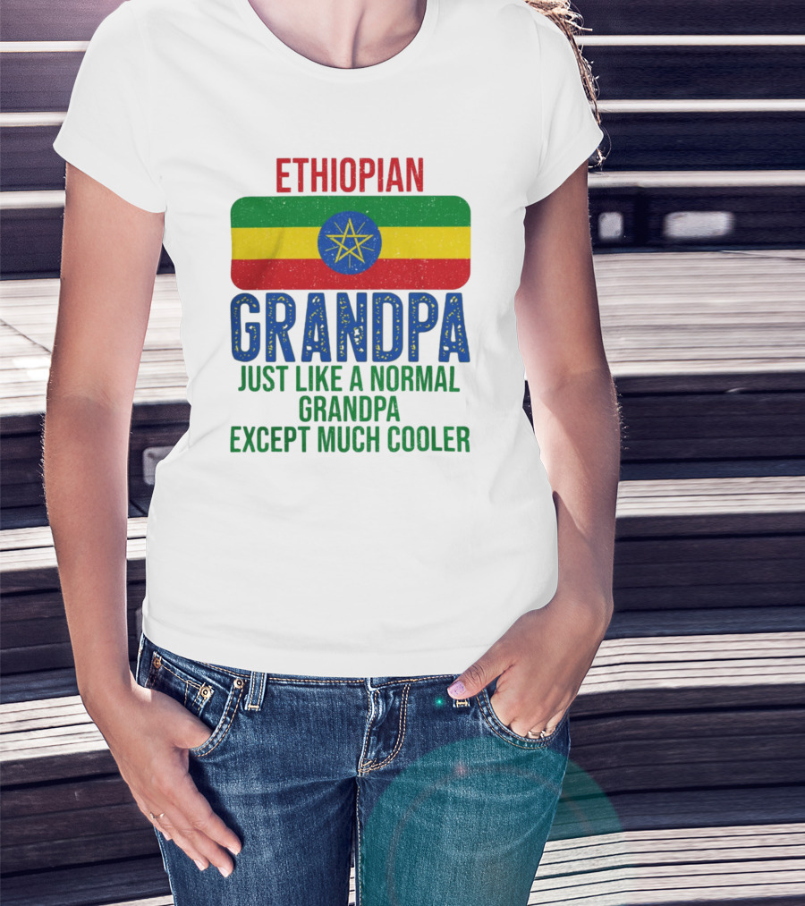 The Ethiopian Grandpa Just Like a Normal Grandpa Except Much Cooler Ethiopia Flag T-shirt is designed for everyday wear and a consistent fit. Fabric is pre-shrunk ring-spun cotton with durable stitching. See the size chart below for exact measurements.