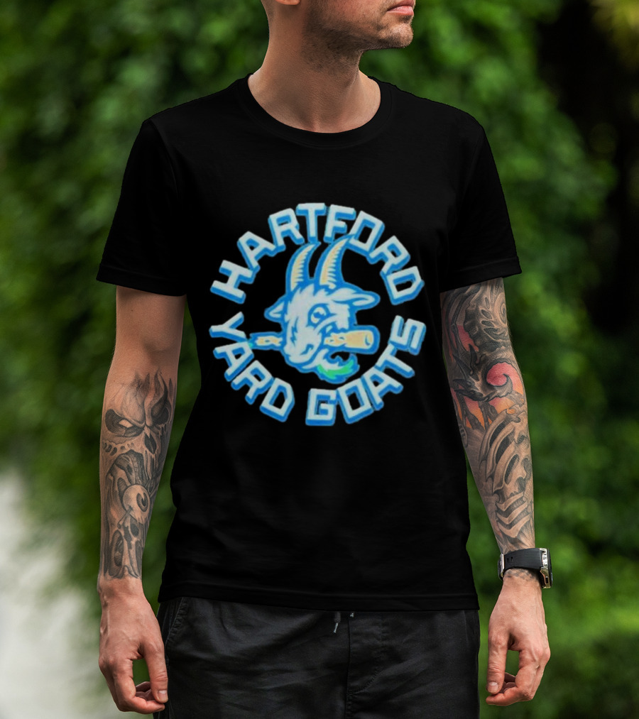 Hartford Yard Goats Blue Goat Logo With Bat T-Shirt