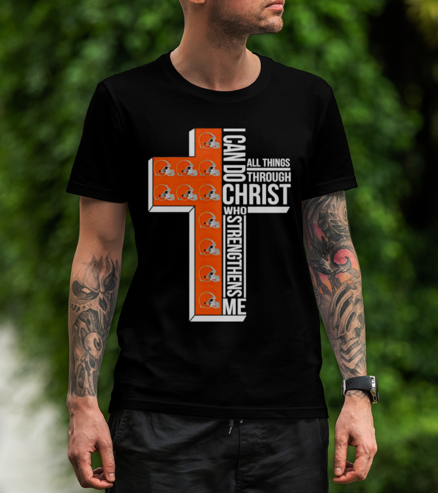 Cleveland Browns I Can Do All Things Through Christ Who Strengthens Me Cross Browns Helmets T-Shirt