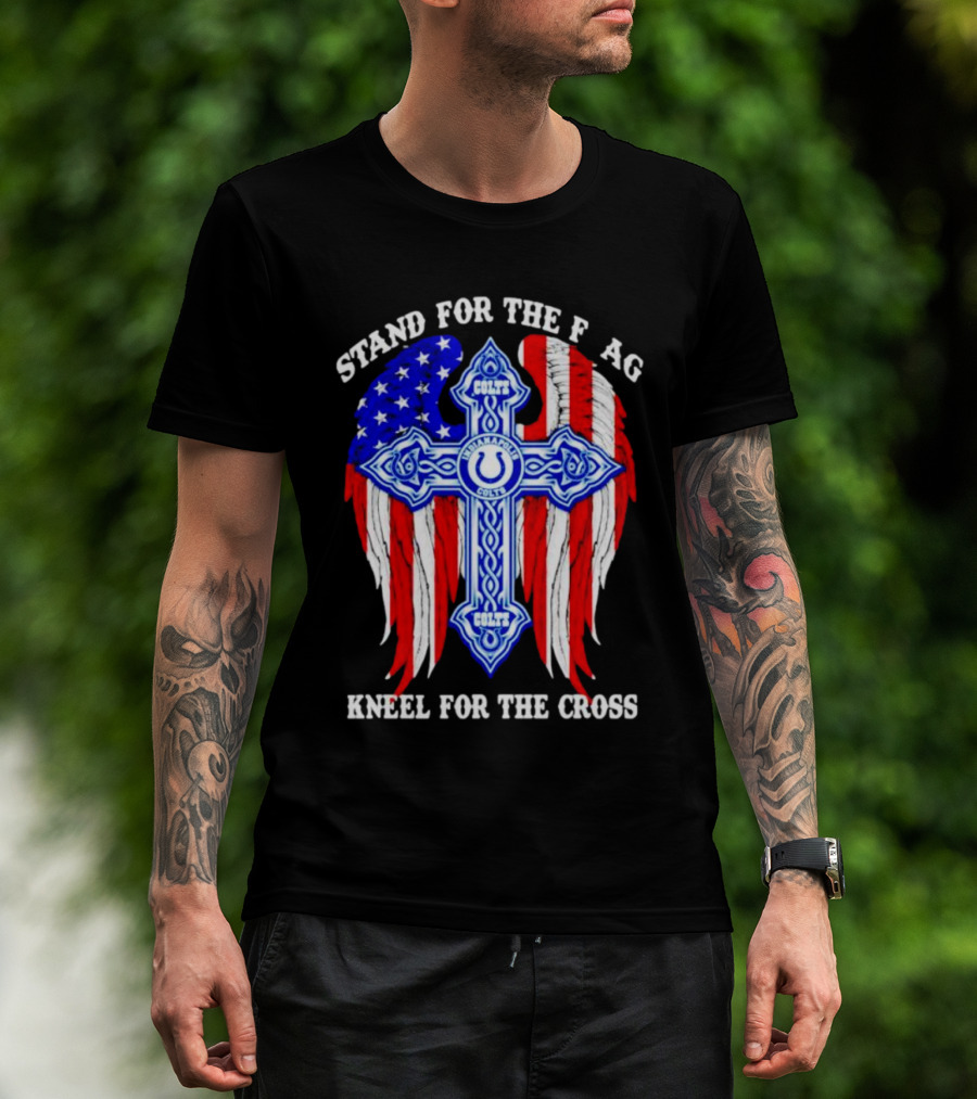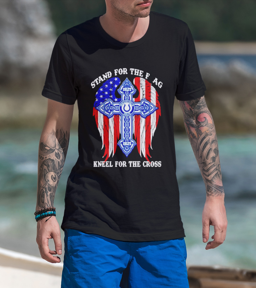 Indianapolis Colts Stand For The Flag Kneel For The Cross American Flag And Cross T-Shirt
