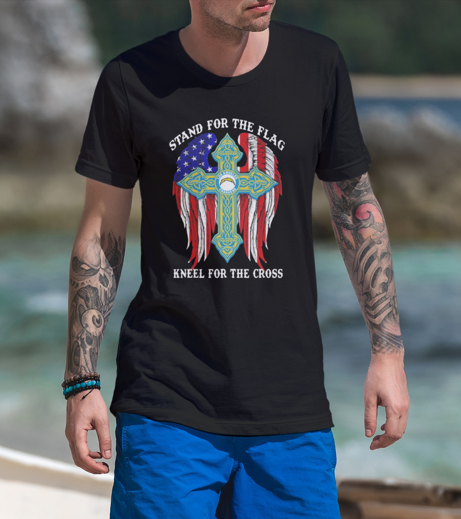 Los Angeles Chargers Stand For The Flag Kneel For The Cross USA Wings Cross T-Shirt