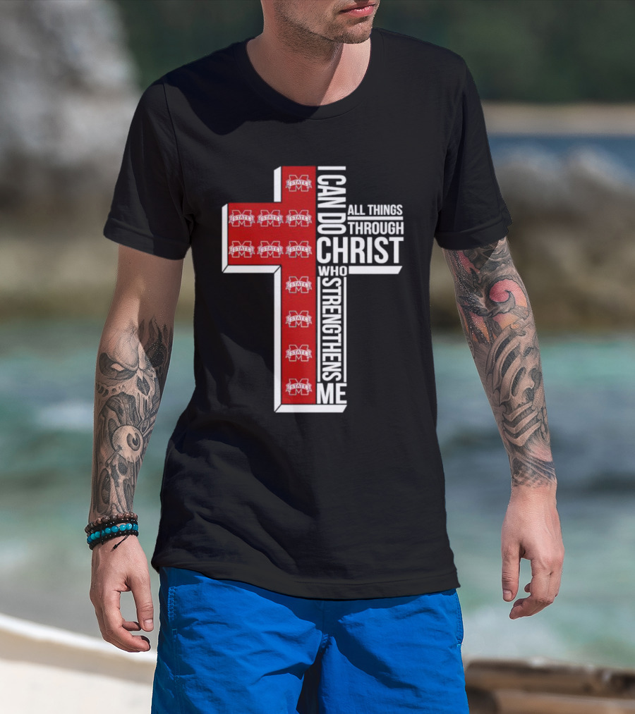 Mississippi State Bulldogs I Can Do All Things Through Christ Who Strengthens Me Cross T-Shirt