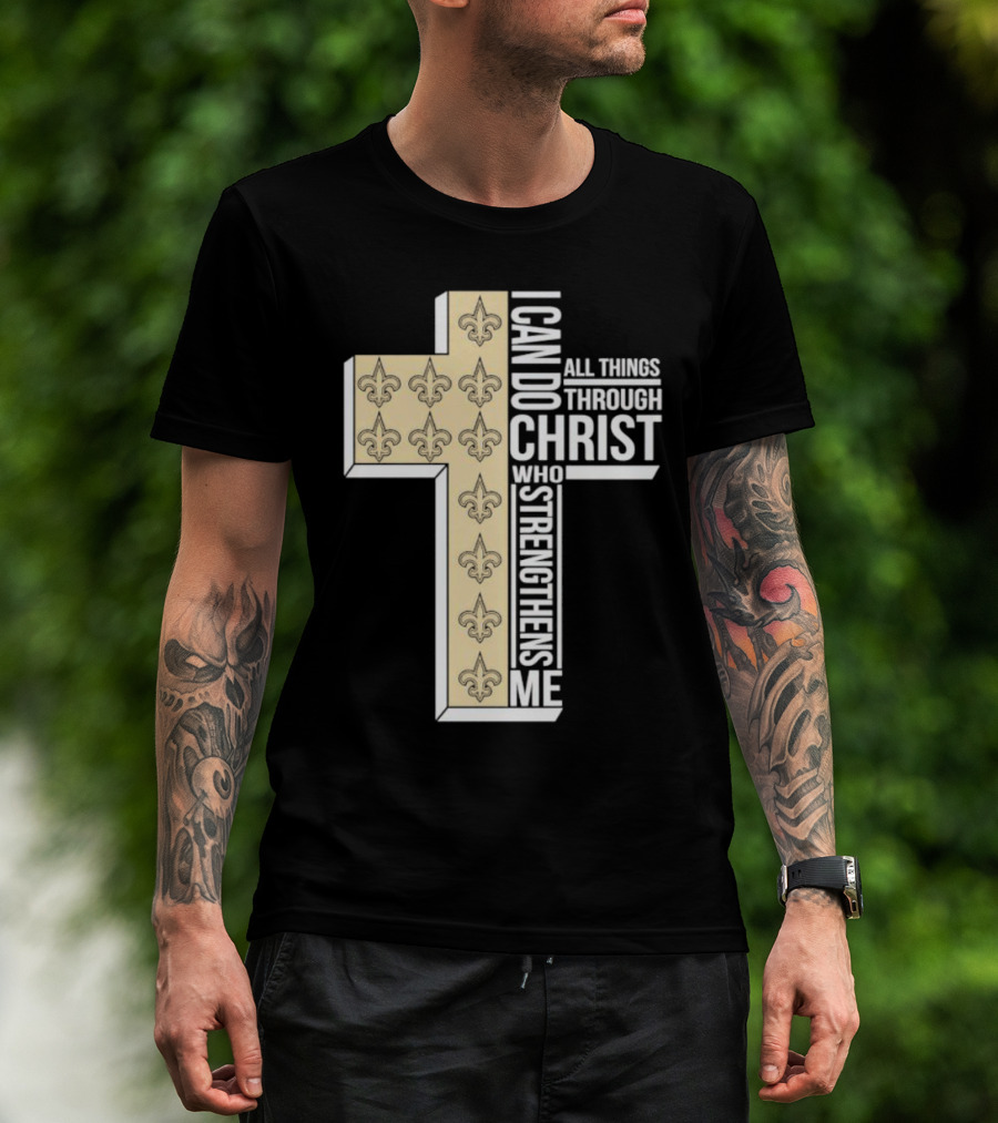New Orleans Saints I Can Do All Things Through Christ Who Strengthens Me Cross Fleur-de-lis T-Shirt