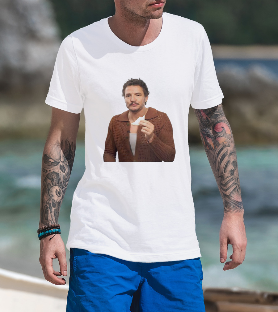 The Pedro Pascal Holding Sandwich in Brown T-shirt is designed for everyday wear and a consistent fit. Fabric is pre-shrunk ring-spun cotton with durable stitching. See the size chart below for exact measurements.